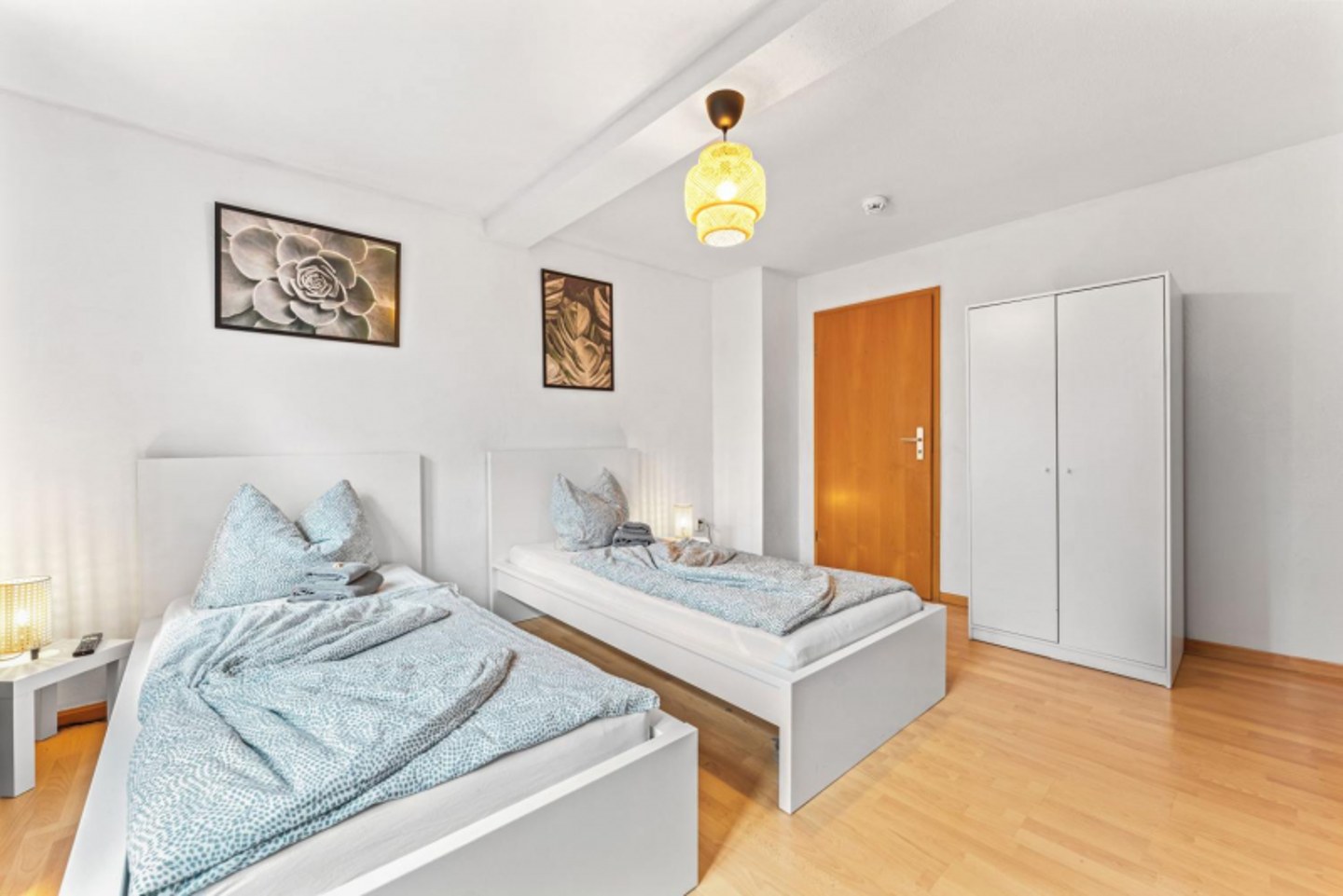 Schlafzimmer 2: 2 Einzelbetten, Kleiderschrank, Bettwäsche (Durchgangszimmer)