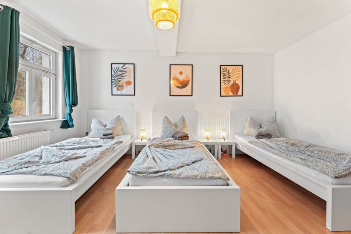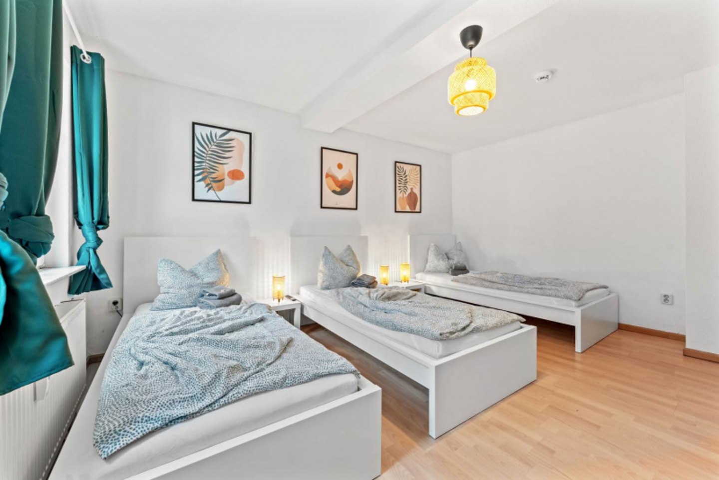 AP05: Die 3 Zimmer Ferienwohnung in Apolda befindet sich im 2.OG links. Sie ist ca. 62 qm groß und bietet Platz für bis zu 6 Personen. Drei separate Schlafzimmer, mit jeweils 1-3 hochwertigen Einzelbetten lassen entspannte Nächte zu. Eine vollständig eingerichtete Küche und ein Badezimmer runden die Wohnung ab. Der wohnungseigene Stellplatz im Hof steht jederzeit zur Verfügung.
