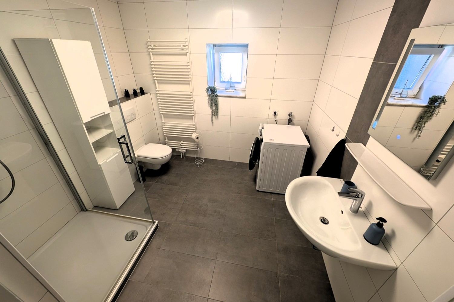 Bad: Dusche, Handtücher vorhanden, WC, Fön, Waschmaschine
