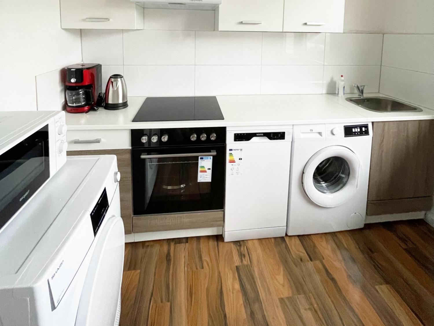 Küche: Küche (Raum), Essecke, Kaffeemaschine, Geschirr, Spülmaschine, Tiefkühler, Wasserkocher, Mikrowelle, Herd 4-Zonen.