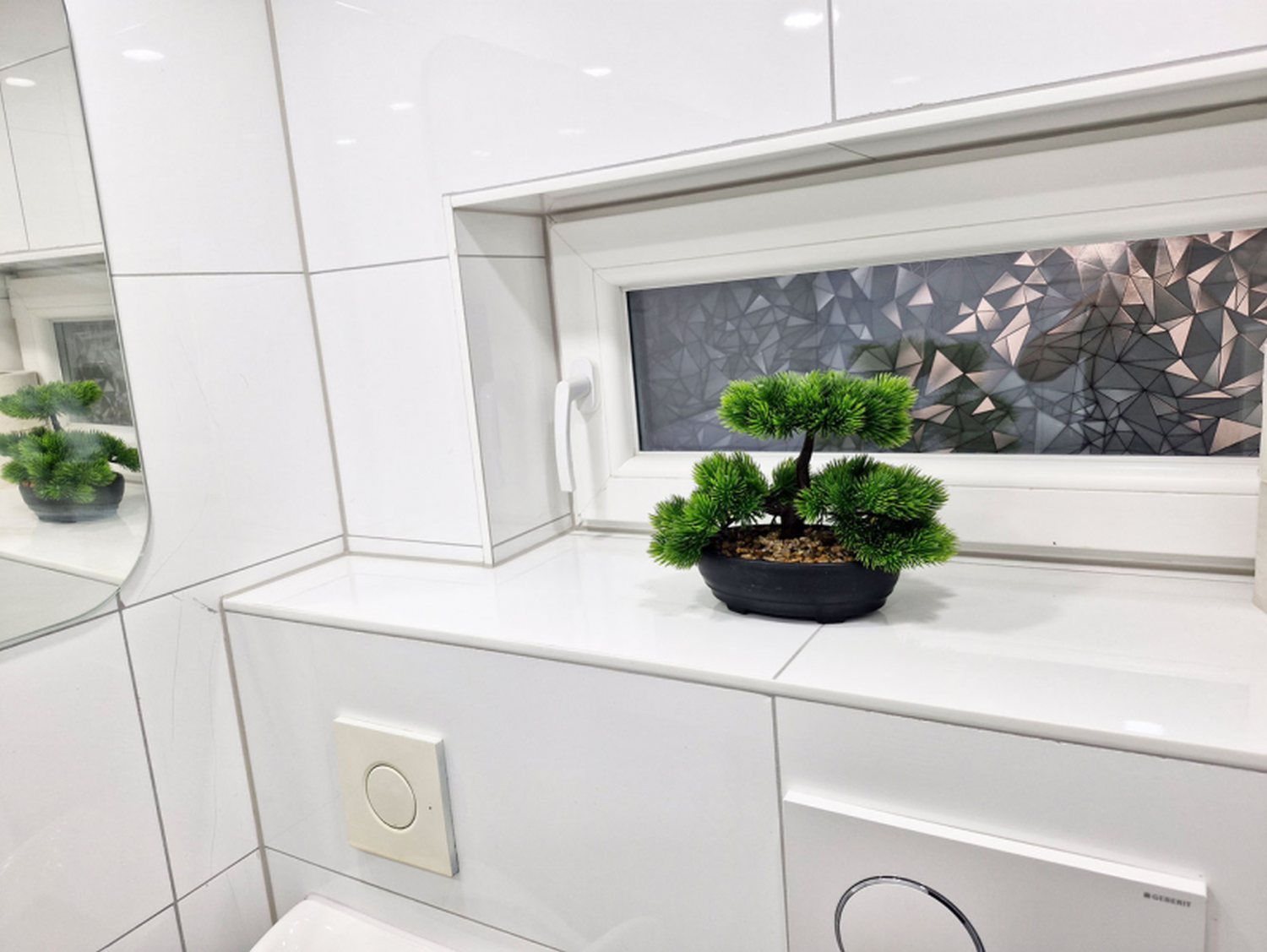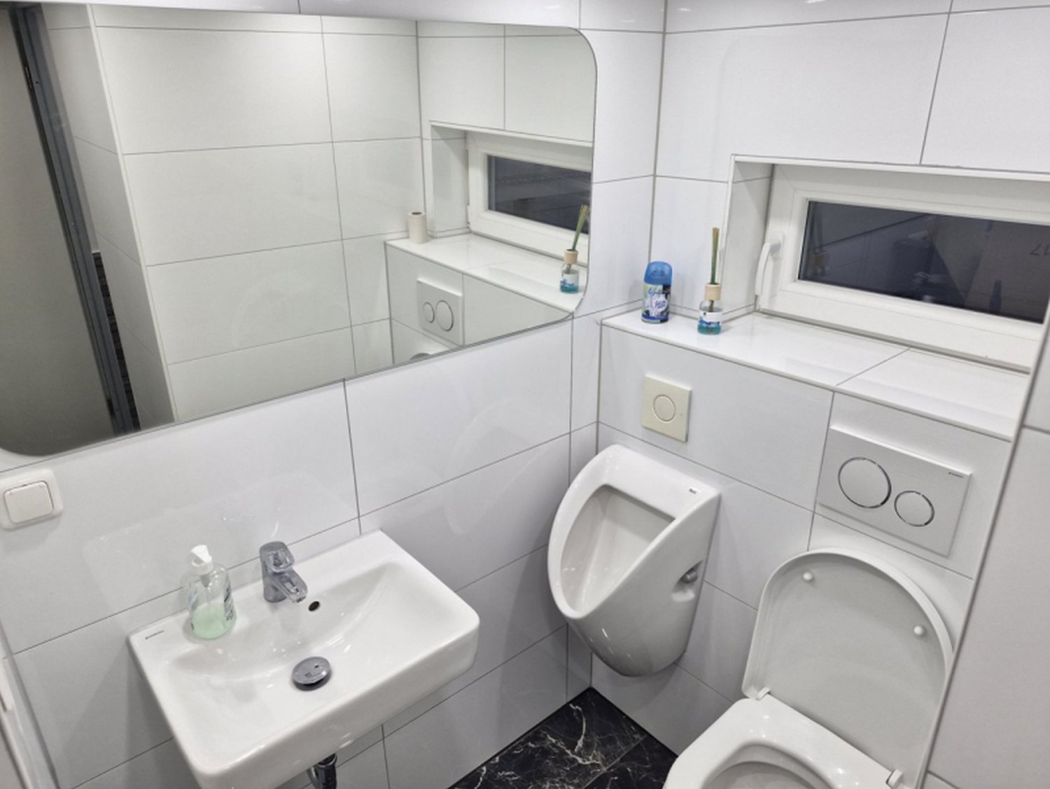 - Badezimmer mit Dusche, WC und Waschbecken