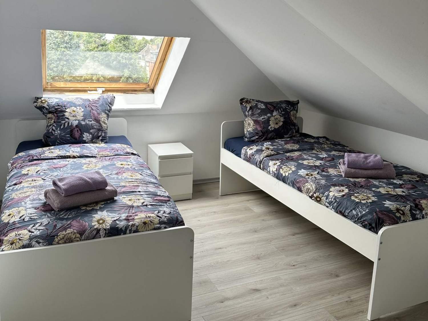 Schlafzimmer 3: 2 Einzelbetten, Bettwäsche, Kleiderschrank, Smart-TV