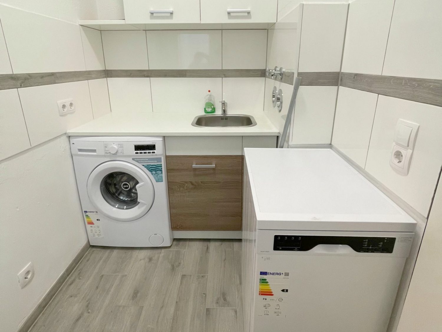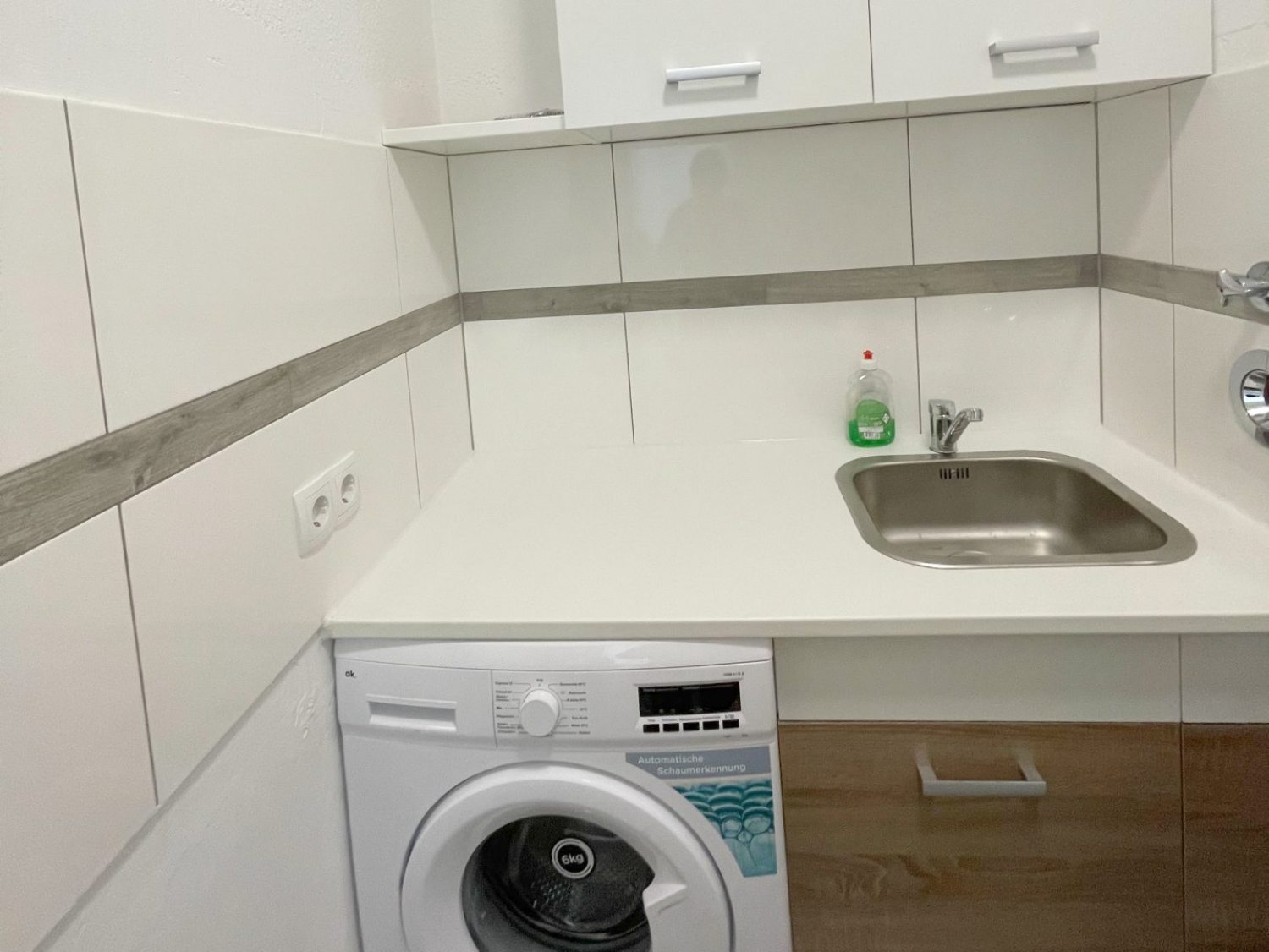 Küche: Essecke, Kaffeemaschine, Geschirr, Spülmaschine, Tiefkühler, Wasserkocher, Mikrowelle, Backofen, Kühlschrank , Herd 4-Zonen