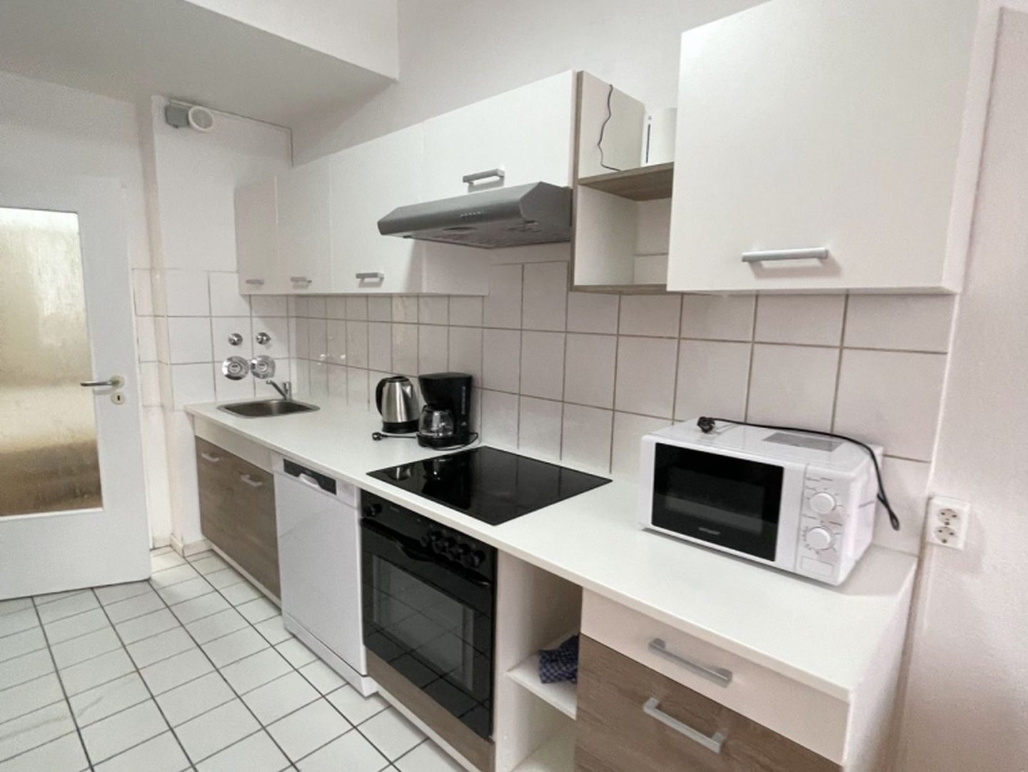 Küche & Haushaltsgegenstände: Küche (Raum), Essecke, Kaffeemaschine, Geschirr, Spülmaschine, Tiefkühler, Wasserkocher, Mikrowelle, Backofen, Kühlschrank, Herd 4-Zonen, Toaster