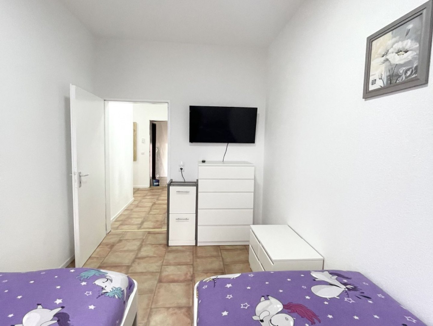 Schlafzimmer 3: 2 Einzelbetten, Bettwäsche, Kleiderschrank, Smart-TV