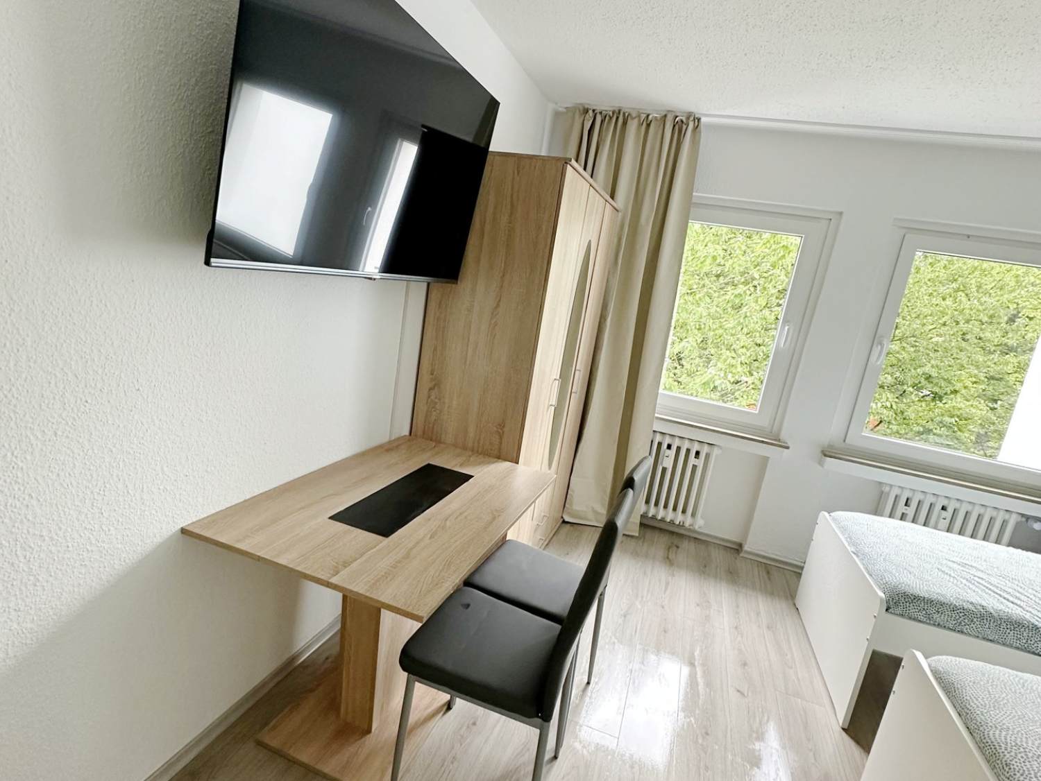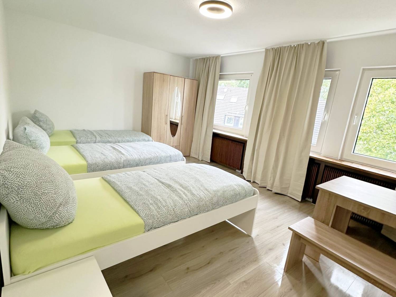Diese 3-Zimmer-Wohnung in Duisburg bietet auf 73 m² Platz für bis zu 8 Personen und befindet sich im 2. OG eines 4-stöckigen Gebäudes. Sie verfügt über drei Schlafzimmer, die jeweils mit Einzelbetten, einem Kleiderschrank und einem TV ausgestattet sind. Die voll ausgestattete Küche bietet alles Notwendige für den täglichen Bedarf. Das Badezimmer ist zweckmäßig eingerichtet und erfüllt alle wichtigen Anforderungen. Die Wohnung ist ideal für Monteure und Arbeitsreisende, die eine praktische und gut gelegene Unterkunft in Duisburg suchen.