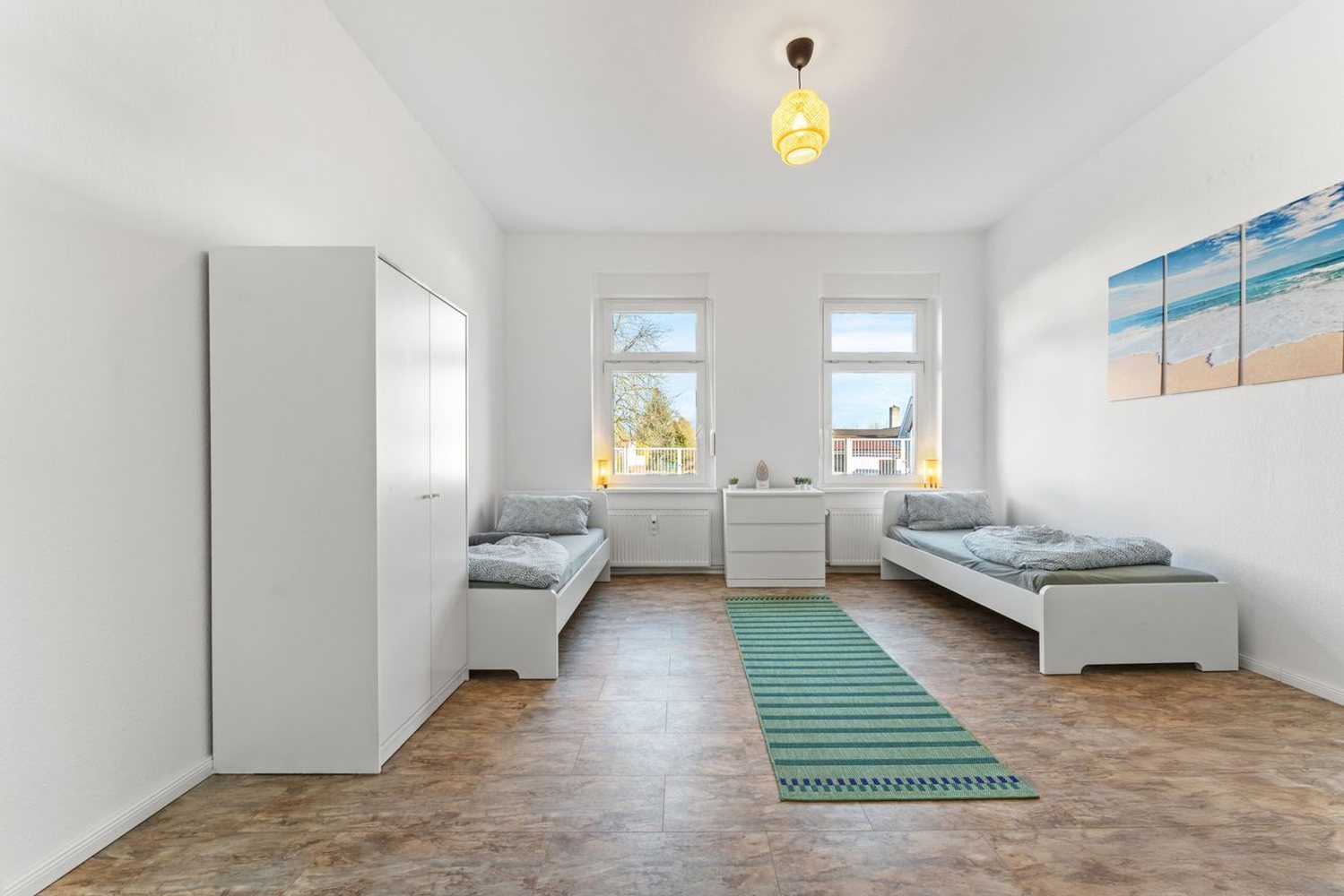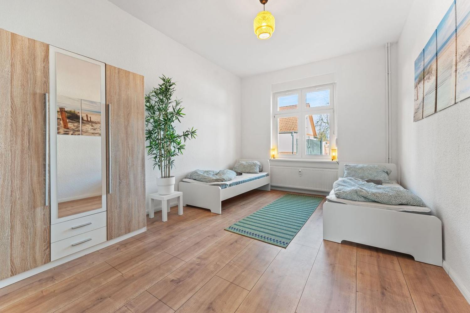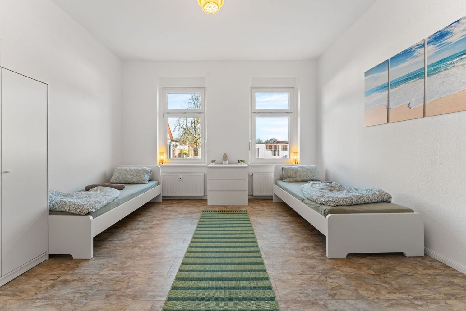 Schlafzimmer 3: 2 Einzelbetten, Bettwäsche, Kleiderschrank