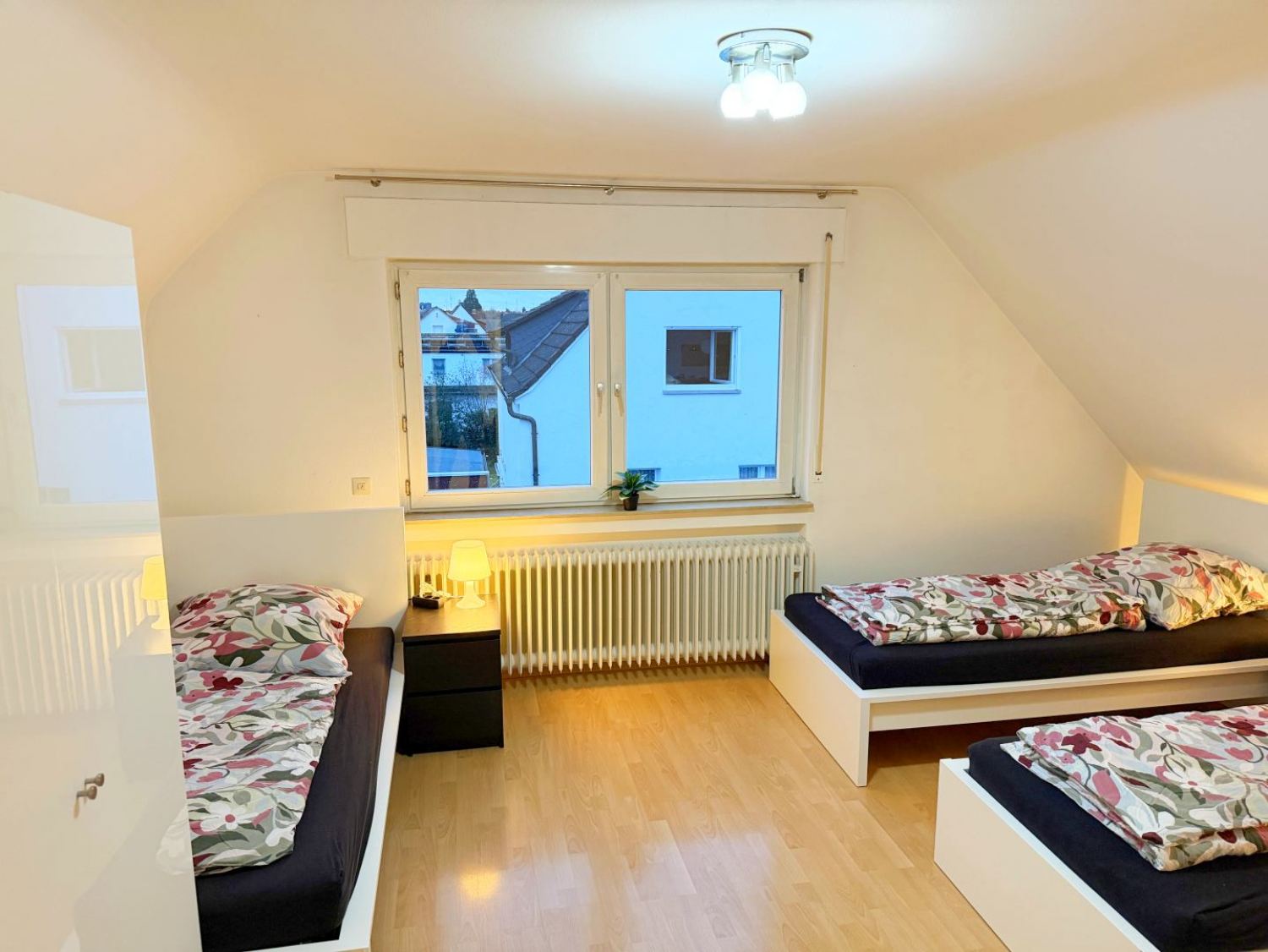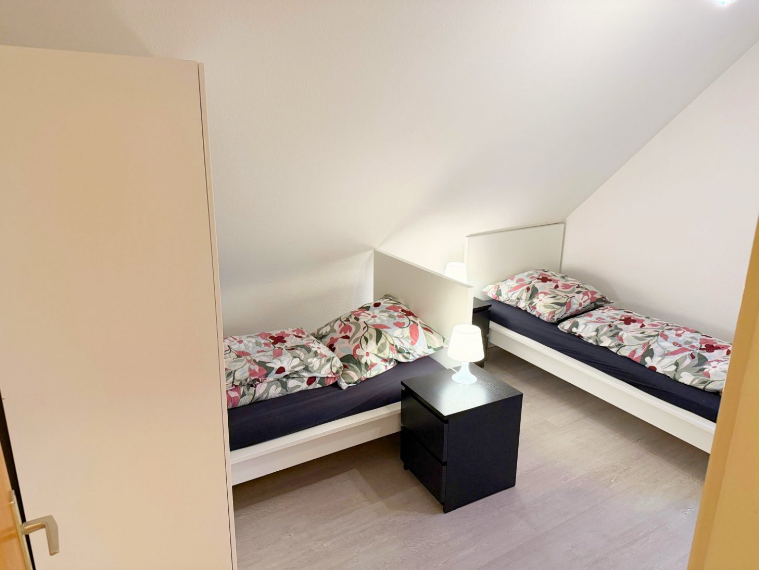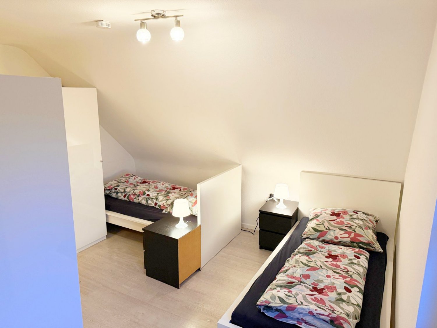 Schlafzimmer 2: 3 Einzelbetten, Bettwäsche, Kleiderschrank