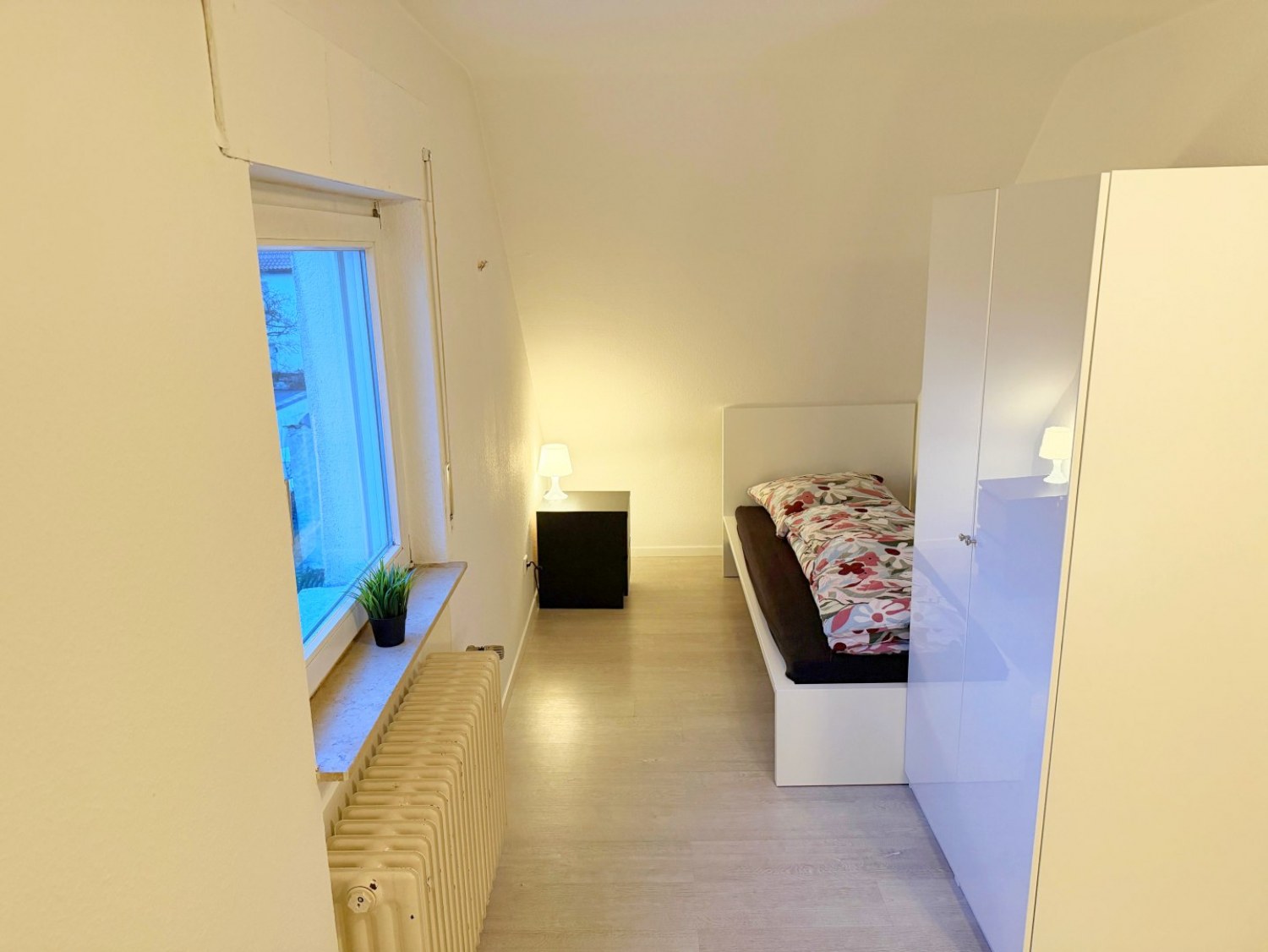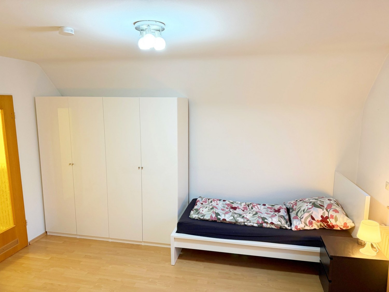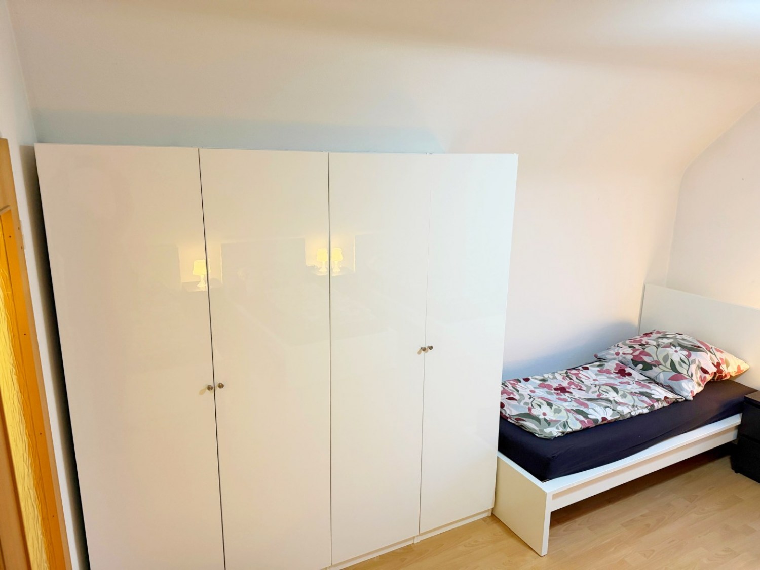 Schlafzimmer 2: 3 Einzelbetten, Bettwäsche, Kleiderschrank