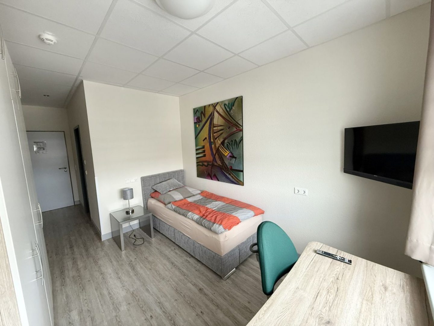 1 Einzelbett, Bettwäsche, Kleiderschrank, Smart-TV, Schreibtisch, Lüftungsanlage