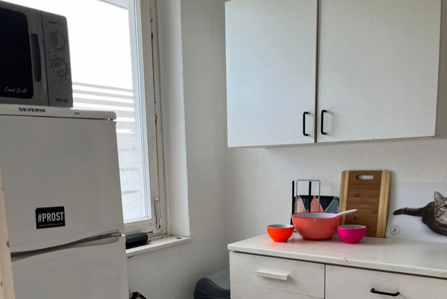 HAN27: Diese 2-Zimmer-Wohnung mit Balkon befindet sich ebenfalls im 2. Obergeschoss. Mit einer Größe von 60 m2 bietet sie Platz für bis zu 6 Personen. Auch hier lädt die gut ausgestattete Küche zum gemeinsamen Kochen ein, sodass eine eigenständige Verpflegung problemlos möglich ist.