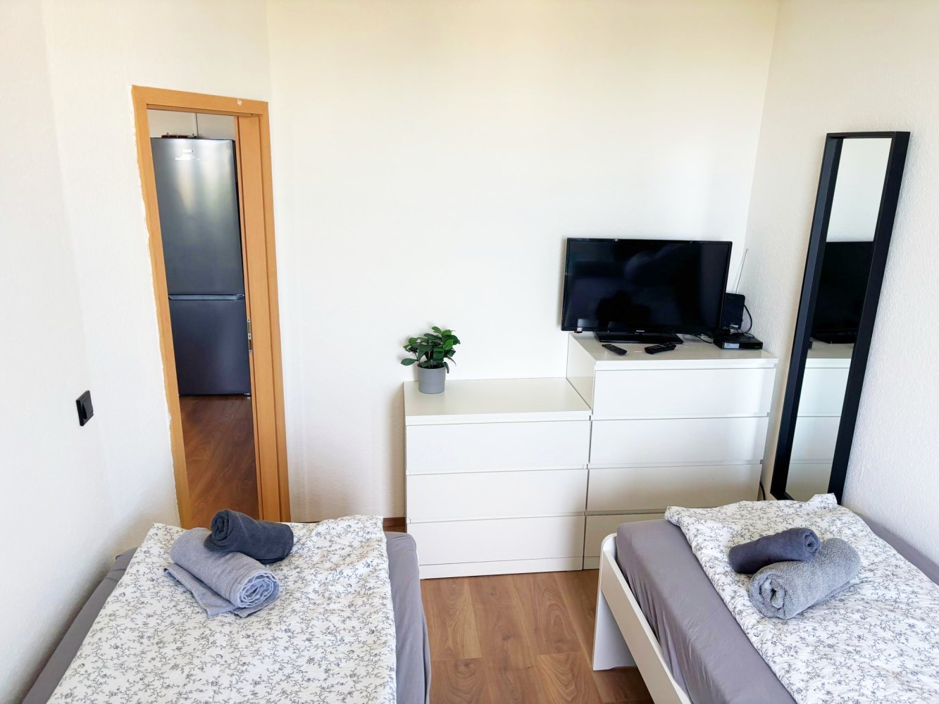 Die Wohnung befindet sich in der 8. Etage eines Apartmenthauses und bietet dank eines Aufzugs bequemen Zugang. Sie verfügt über zwei Zimmer und bietet Platz für 1-5 Personen.