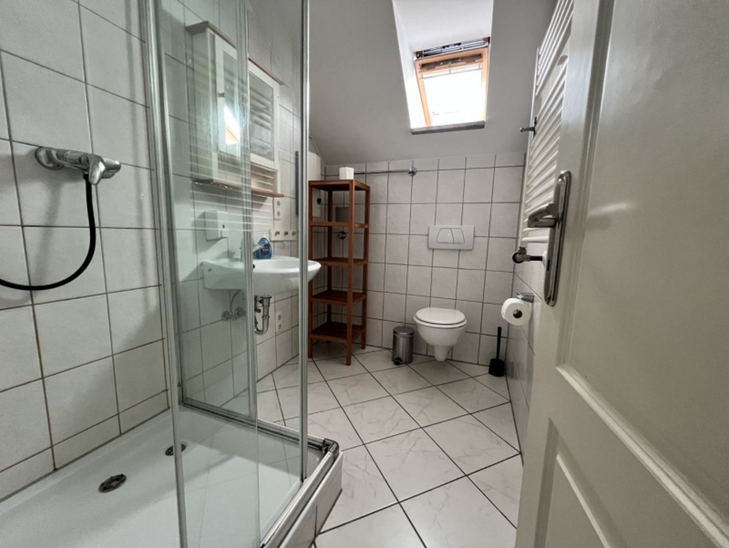 - Modernes Bad mit Dusche, WC und Waschbecken