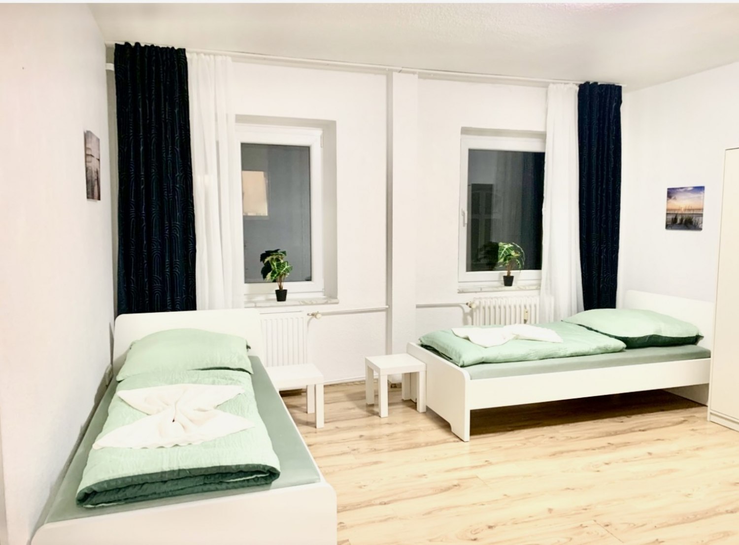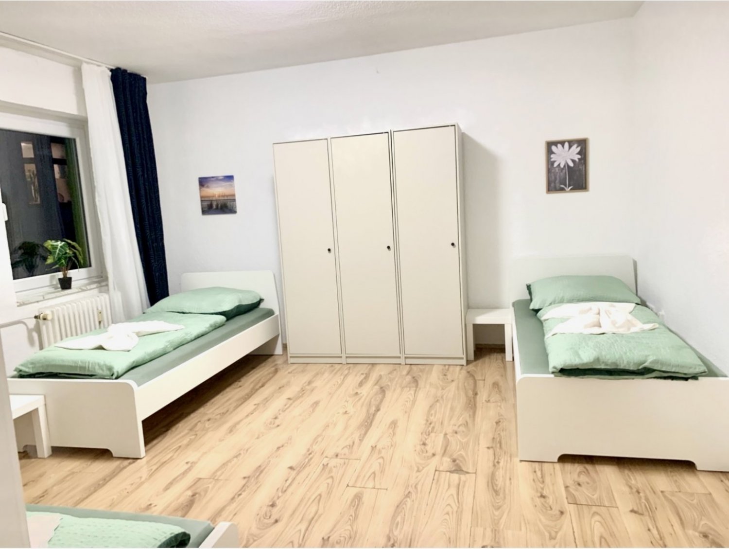 Schlafzimmer 1: 3 Einzelbetten, Kleiderschrank, Bettwäsche