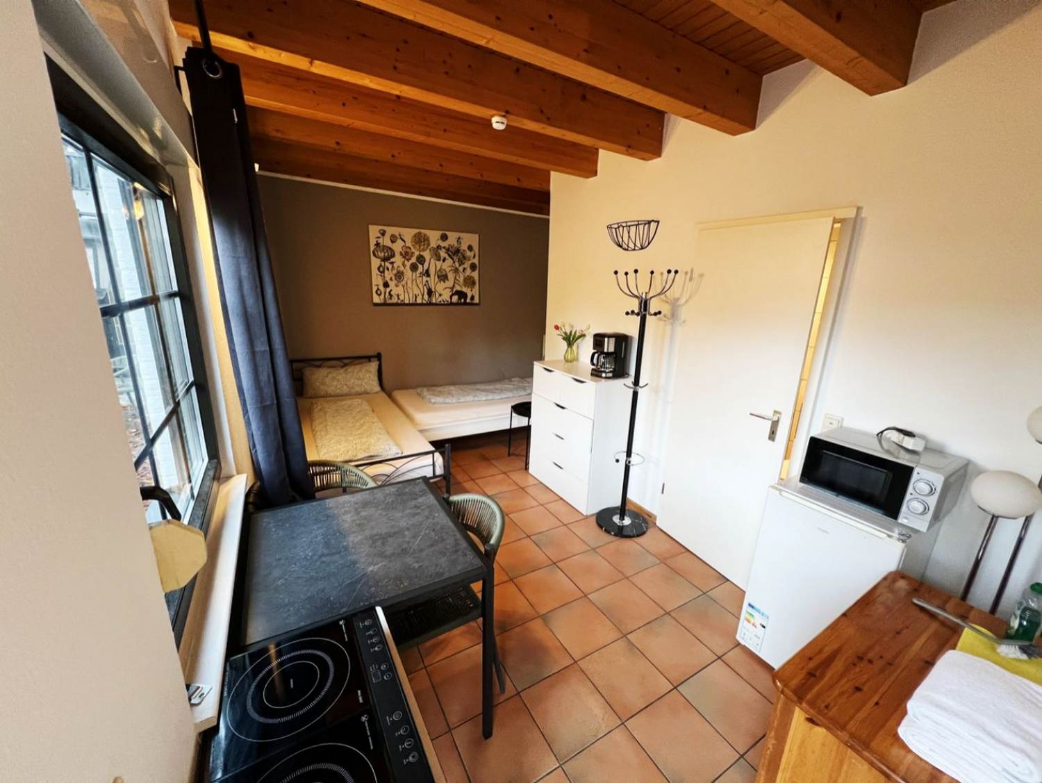 - Eine Essecke sowie eine Kaffeemaschine und ein Wasserkocher für Ihre kulinarischen Bedürfnisse.