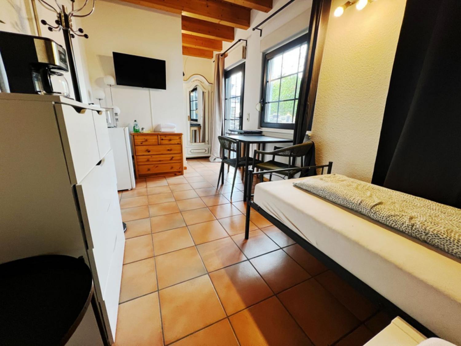 Entdecken Sie unsere komfortable Monteurwohnung in Burscheid! Unsere 1-Zimmer-Ferienwohnung im Erdgeschoss bietet auf 18 Quadratmetern ein gemütliches Wohn-/ Schlafzimmer und ist ideal für 2 Personen.