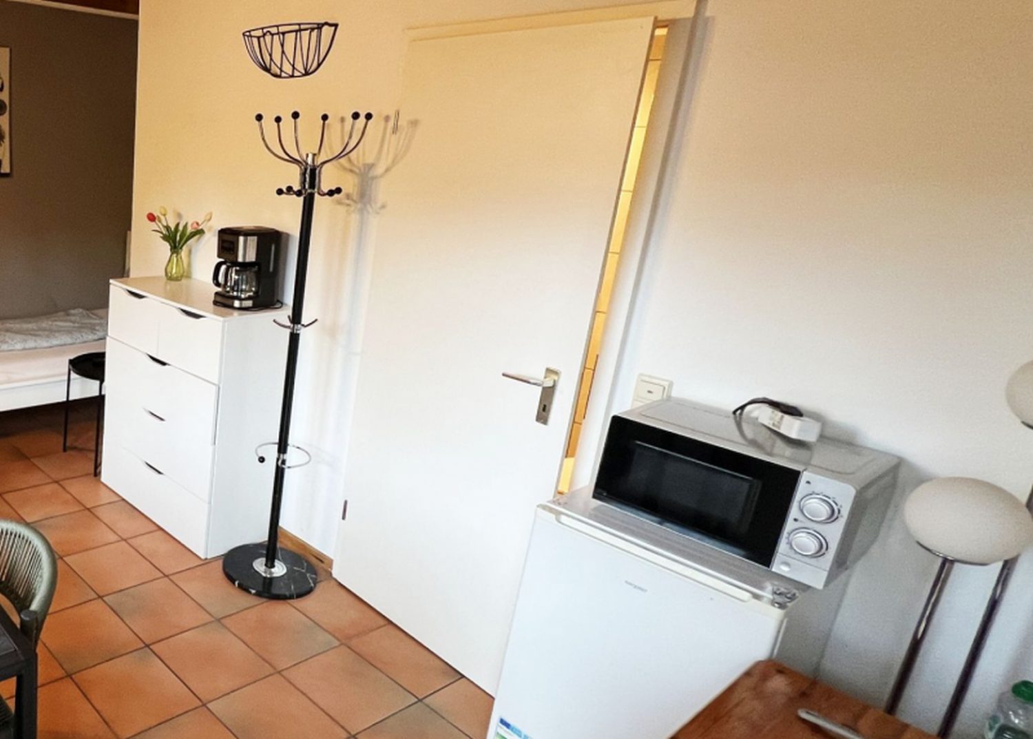 Bitte beachten Sie, dass in unserer Monteurwohnung keine Küche vorhanden ist. Jedoch finden Sie mit der Essecke und den vorhandenen Haushaltsgegenständen dennoch Möglichkeiten für Ihre Verpflegung.
