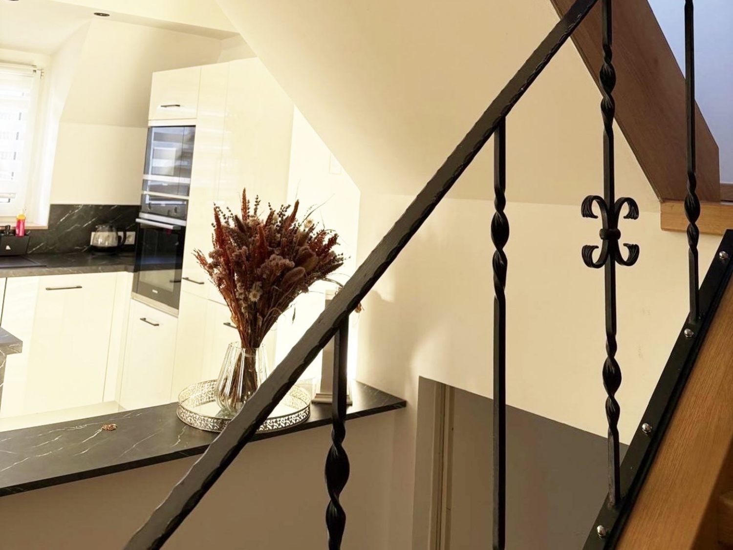 Es erwartet Sie eine Charmante Wohnung mit Balkon auf 2 Etagen (1.OG & Dachgeschoss) geteilt, bietet Platz für 5-6 Personen und hat eine Größe von ca. 65m². Im Dachgeschoss sind 2 Schlafzimmer, einmal mit einem Doppelbett und einmal mit 2 Einzelbetten. Im 1. OG ein weiteres geräumiges Schlafzimmer mit 2 Einzelbetten. Eine schöne offene Küche verbunden mit dem Esszimmer und der Küche. Von der Wohnung aus gelangen Sie sofort an die Wupper, welche in ca. 10 Min Fußweg in den Rhein mündet. Sie ist komplett ausgestattet für Selbstversorger und eignet sich hervorragend für Ihren Aufenthalt wegen der nahen Lage nach Köln und dem Verkehrs-Anbindungsnetz.