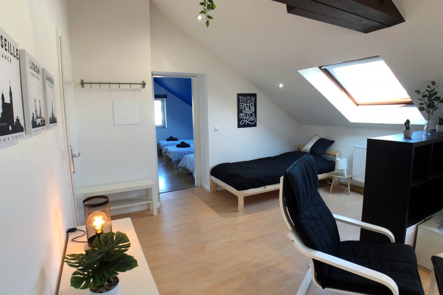 Wohn-Schlafbereich: 2 Einzelbetten, Schlafsofa, Smart-TV, Bettwäsche vorhanden