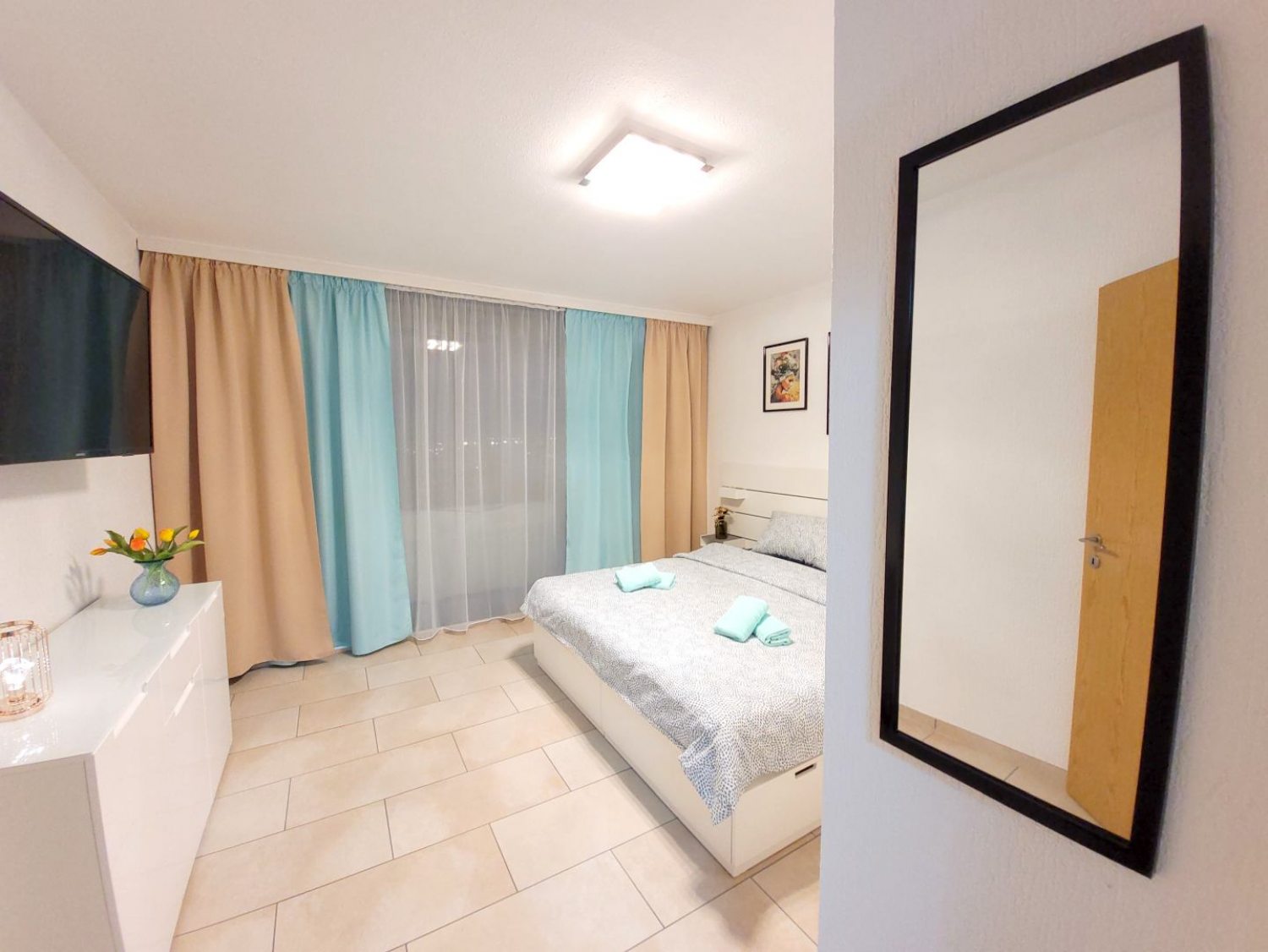 2 Einzelbetten, Bettwäsche, Kleiderschrank, Smart-TV