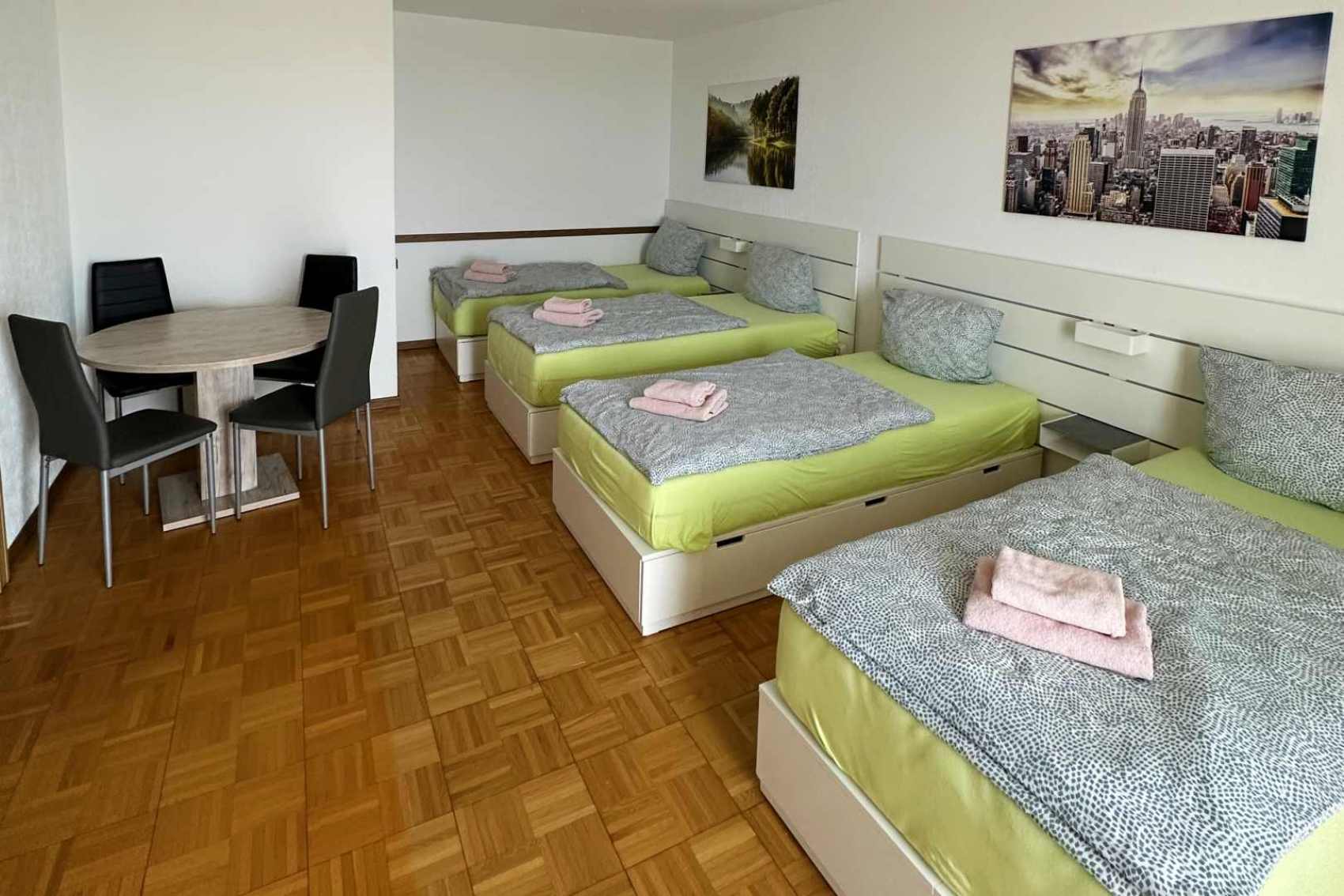 4 Einzelbetten, Bettwäsche, Kleiderschrank, Smart-TV