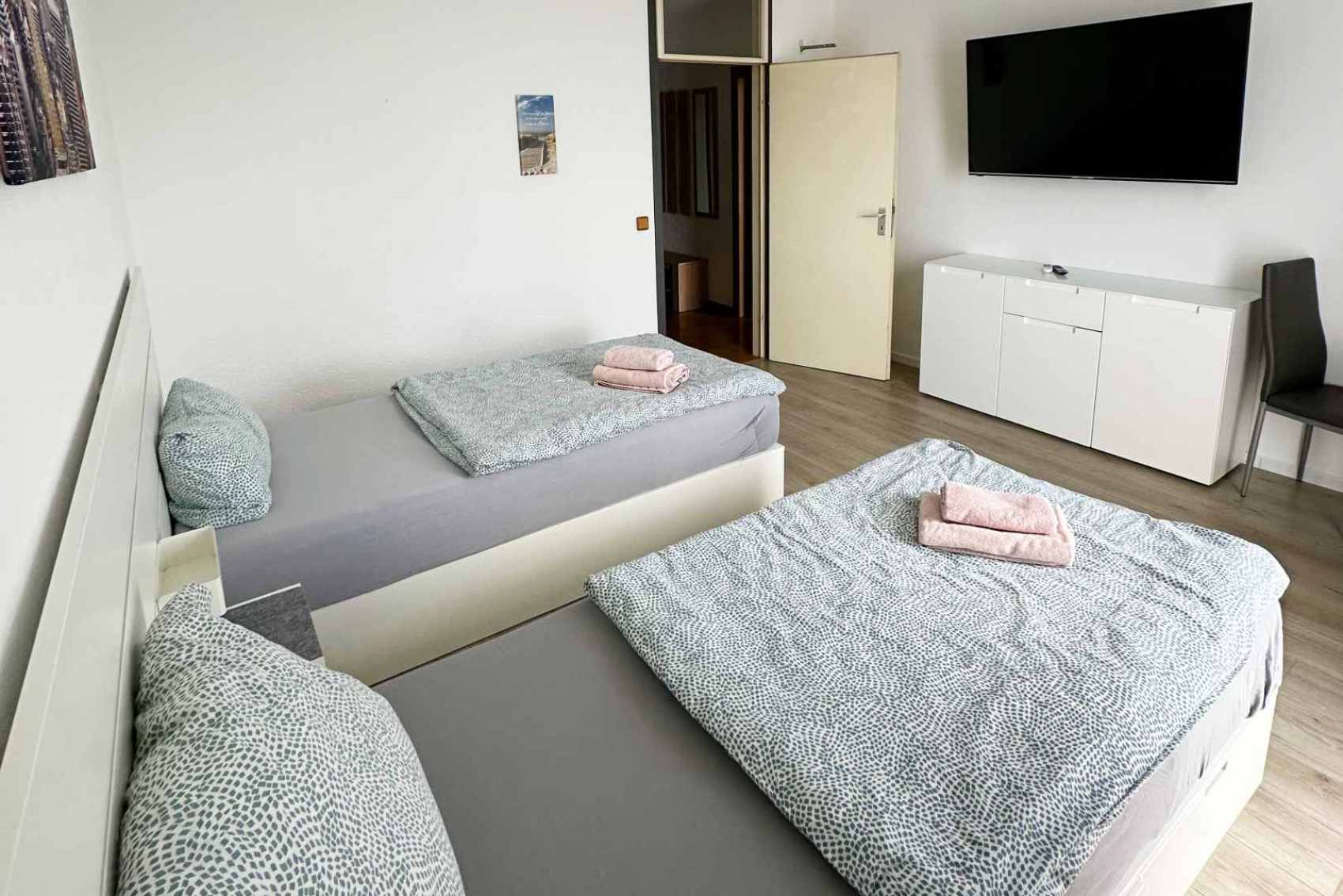 2 Einzelbetten, Bettwäsche, Kleiderschrank, Smart-TV