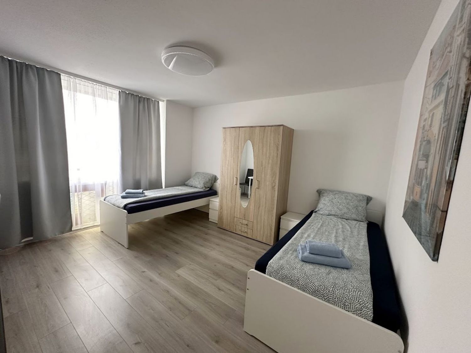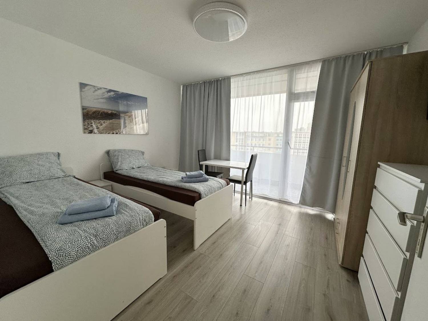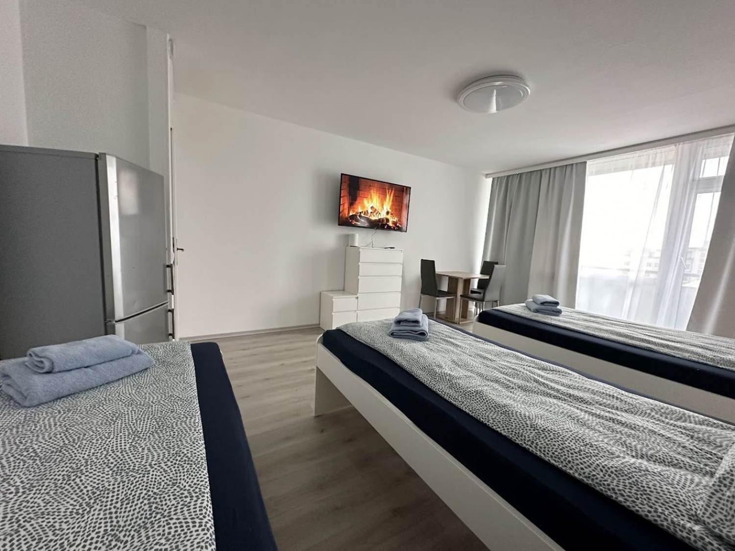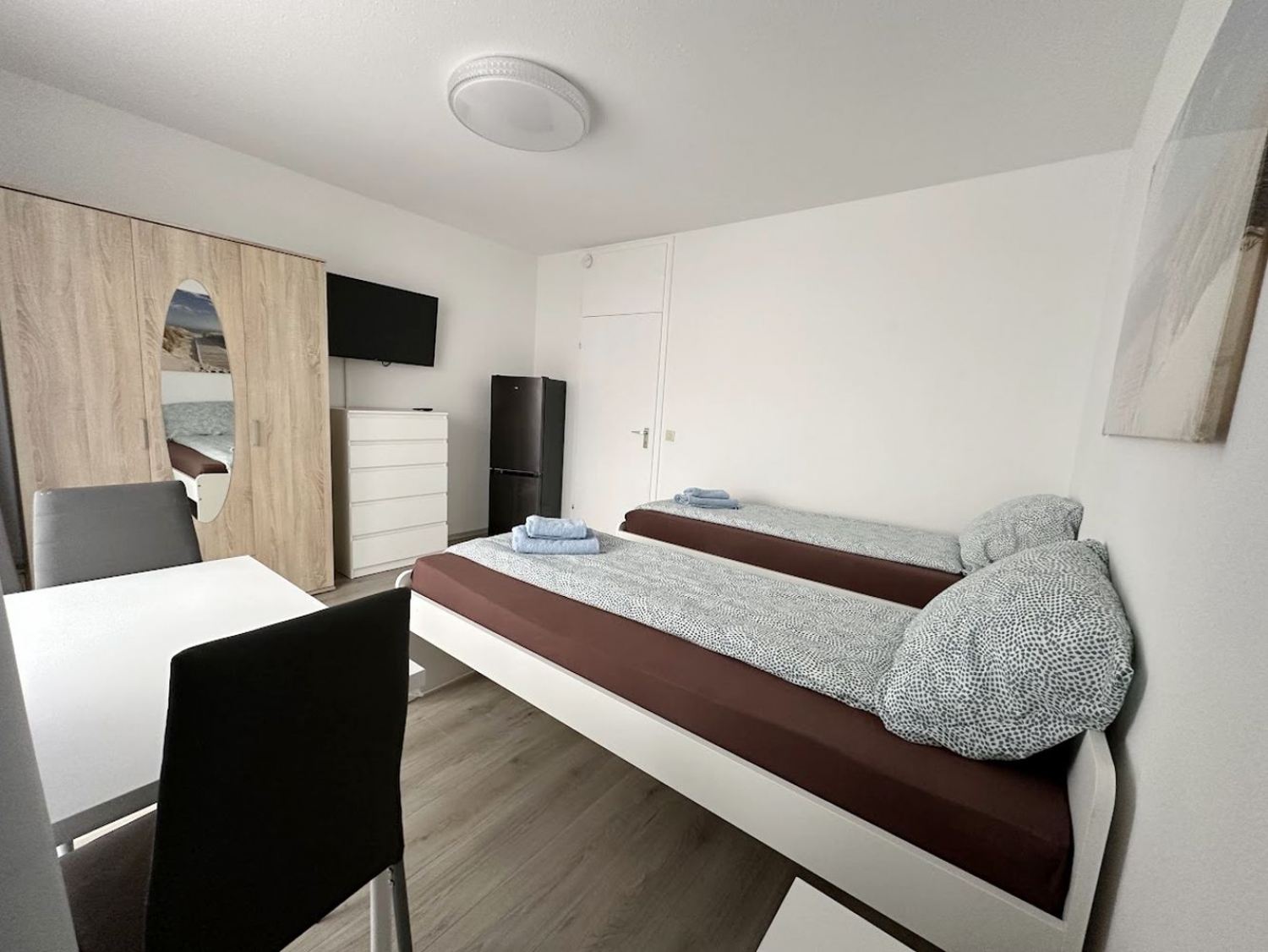 2 Einzelbetten, Bettwäsche, Kleiderschrank, Smart-TV