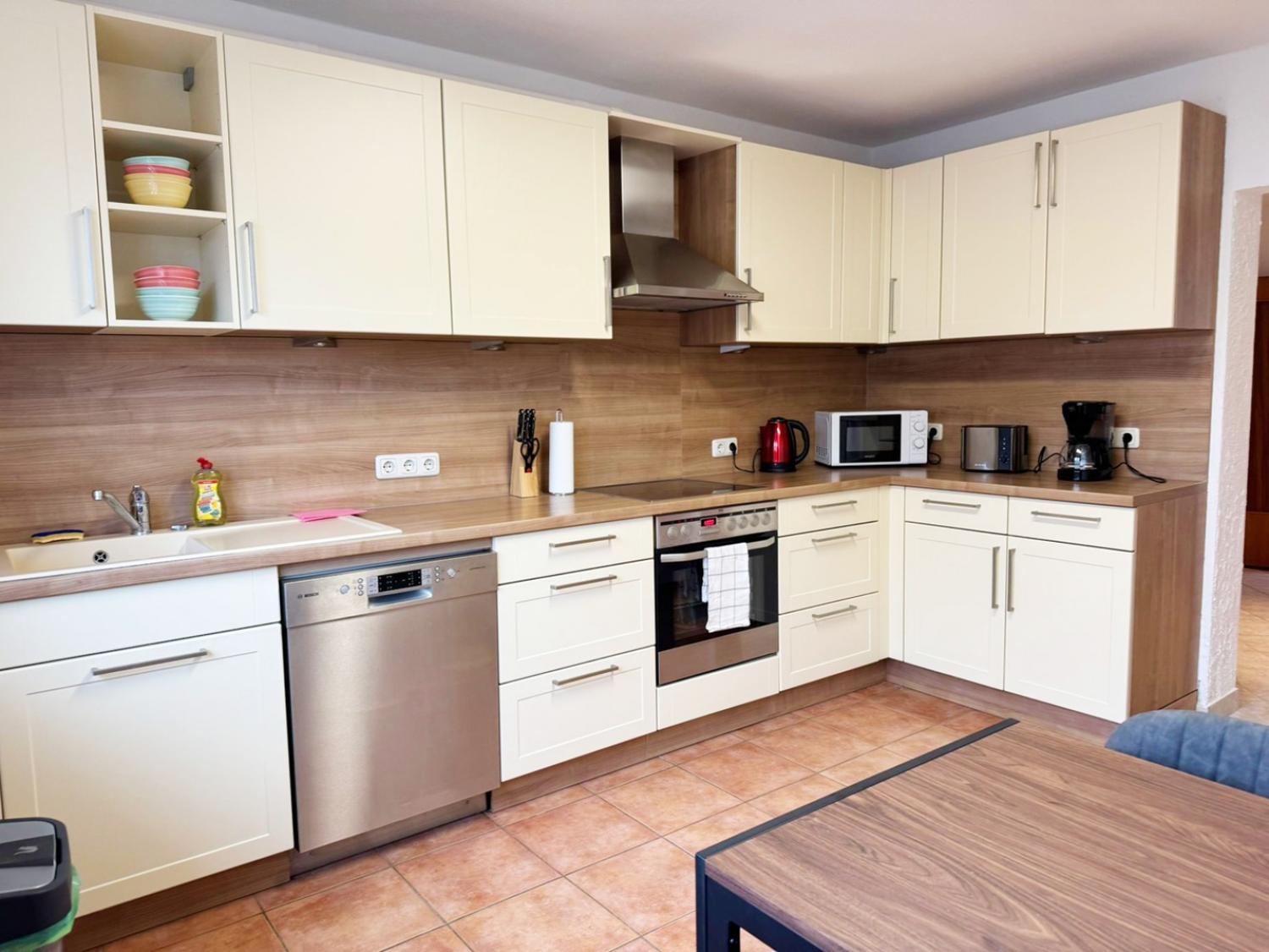 Die Ferienwohnung ist 145 m² groß und bietet Ihnen Platz für bis zu 8 Personen optional 9 Personen mit Schlafsofa. Sie verfügt über 5 Schlafzimmer, darunter ein Durchgangszimmer. Eine voll ausgestattete neue Einbauküche und Esszimmern Bereich. 1 Bad mit Dusche, Wanne und WC.