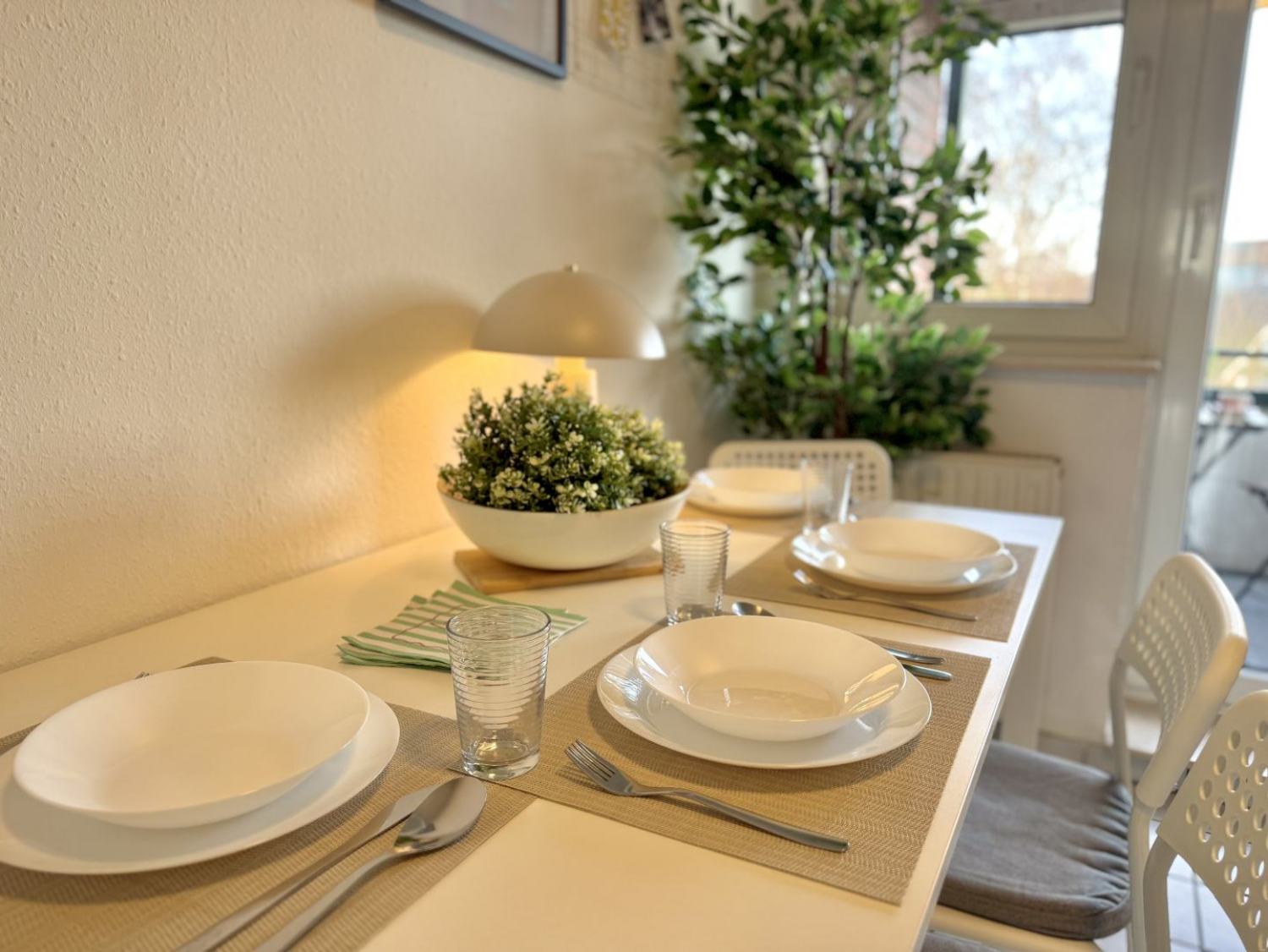 Das 2-Zimmer-Apartment im 3.OG auf 66m² überzeugt durch modernes Design, komfortable Ausstattung und eine exzellente Lage nach Düsseldorf oder auch Köln – ideal für Geschäftsreisende, Paare oder Städtetrips. Den Gästen bietet das Apartment eine gut ausgestattete Küche, WLAN sowie helle offene Räume. Ob für einen kurzen Aufenthalt oder längere Zeit – hier finden Gäste alles, was Sie für einen angenehmen Aufenthalt brauchen. Es können bis zu 4 Personen bequem auf Einzelbetten unterkommen, die sich in geräumige Zimmer befinden.