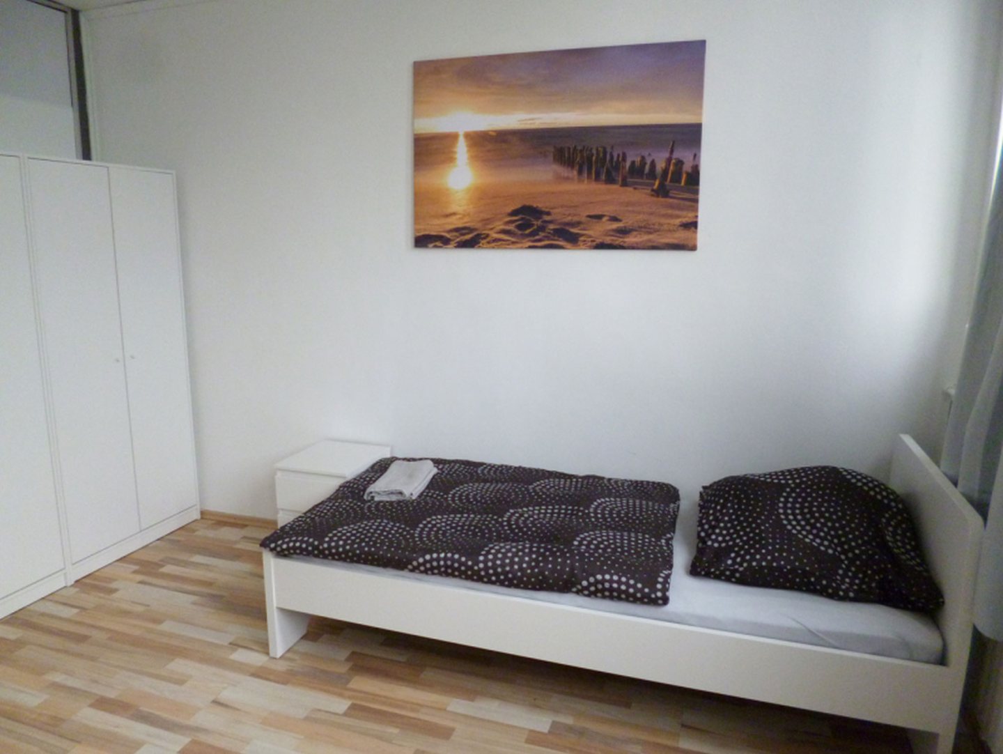 Schlafzimmer 1: 2 Einzelbetten, 2 Nachtkästchen, Bettwäsche, 2 Kleiderschränke