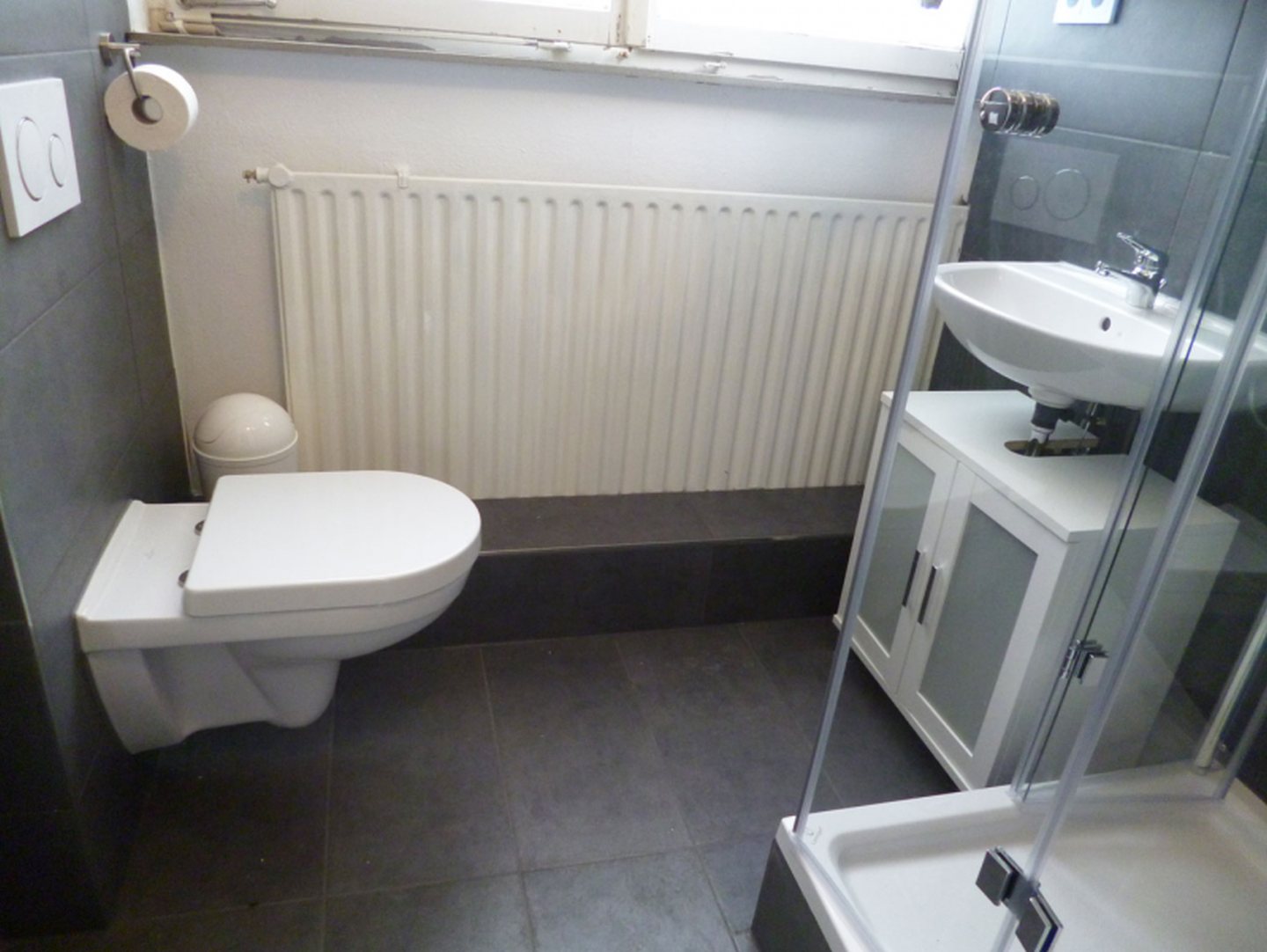 Bad 2: Dusche, WC, Waschbecken mit Spiegel, Waschbeckenunterschrank