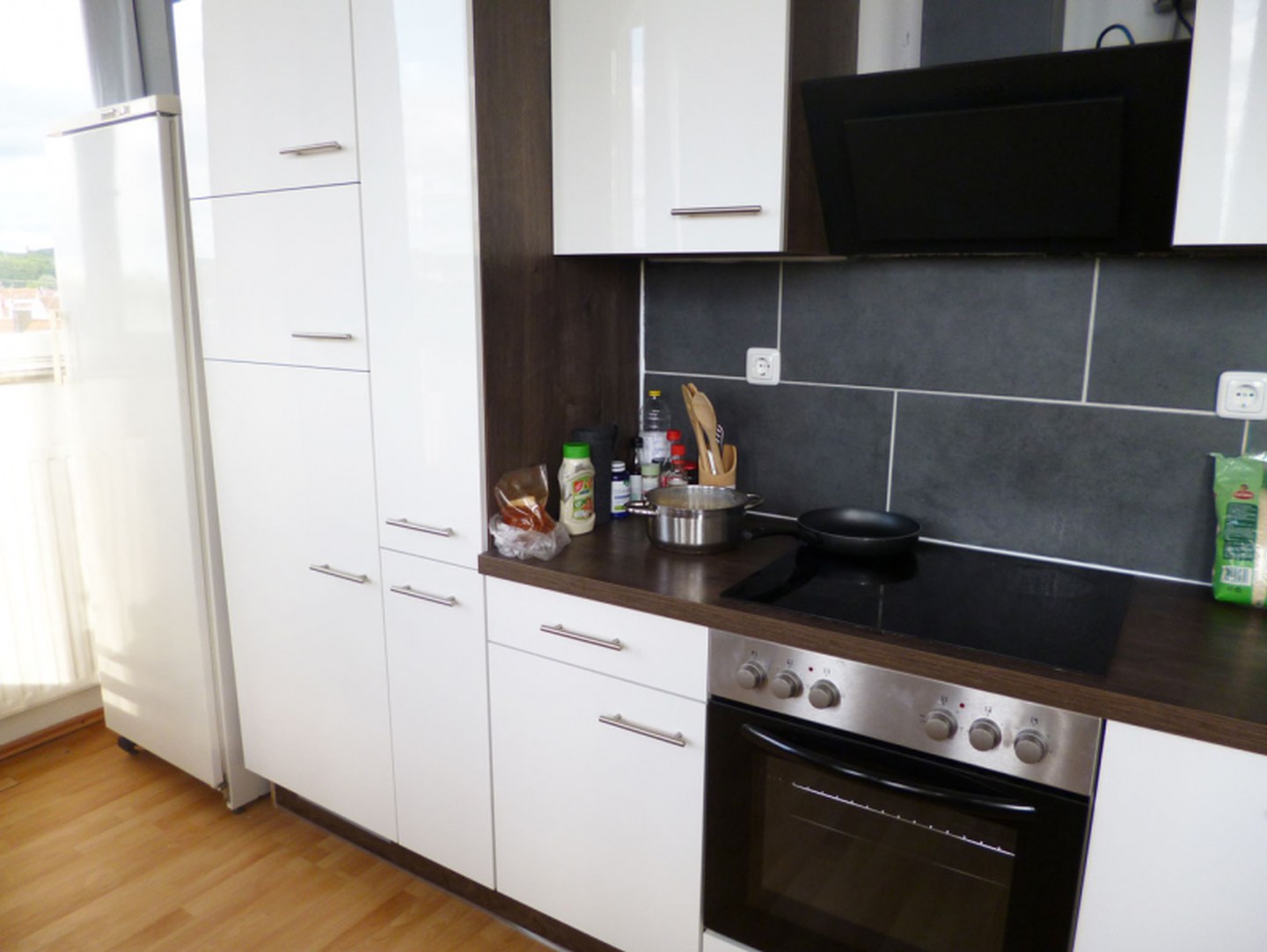 Die von uns angebotenen Wohnungen haben eine voll ausgestattete Küche mit Kühlschrank, Gefrierfächer, Herd und Backofen. Dazu gehören auch alle notwendigen Utensilien wie Geschirr, Gläser, Töpfe und Pfannen.