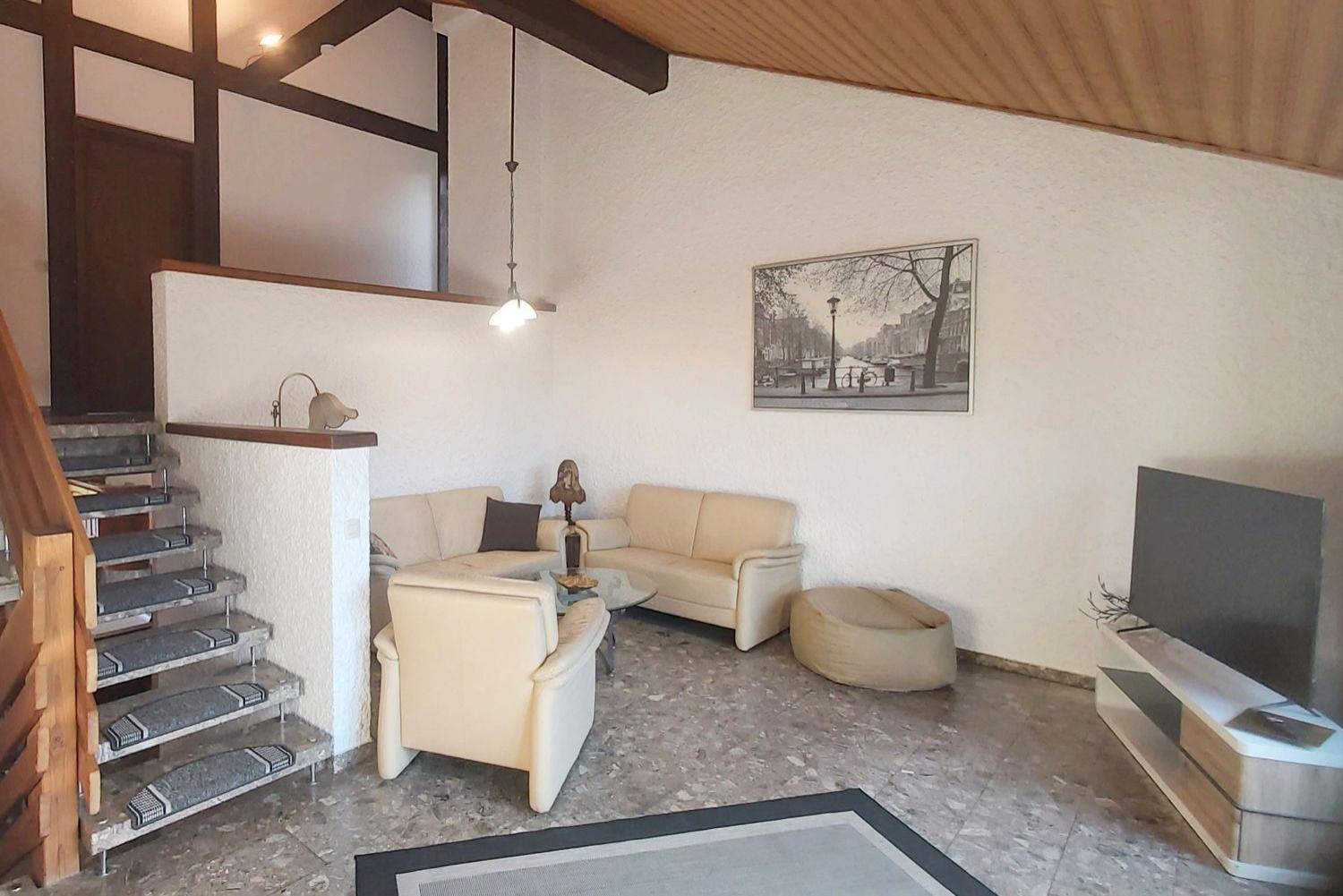 Sehr schönes und geräumiges Reihenendhaus mit offener Galeriewohnung, verteilt auf Untergeschoss, Erdgeschoss und 1. Obergeschoss,, ideal für bis zu 6 Personen. Die Unterkunft bietet 3 Schlafzimmer, 1 Wohnzimmer und insgesamt 135 m² Wohnfläche. Ein Balkon und eine Terrasse mit direktem Gartenzugang laden zum Entspannen ein. Die Küche ist voll ausgestattet, das Bad verfügt über Dusche, Duschwanne, WC und eine Waschmaschine.