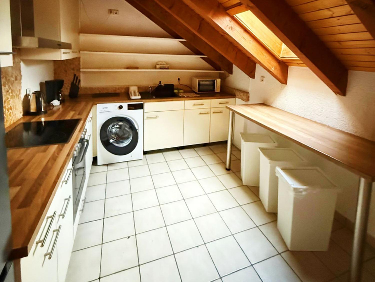 Küche & Haushaltsgegenstände: Küche separat, Kaffeemaschine, Geschirr, Wasserkocher, Mikrowelle, Backofen, Kühlschrank , Herd 4-Zonen, Toaster