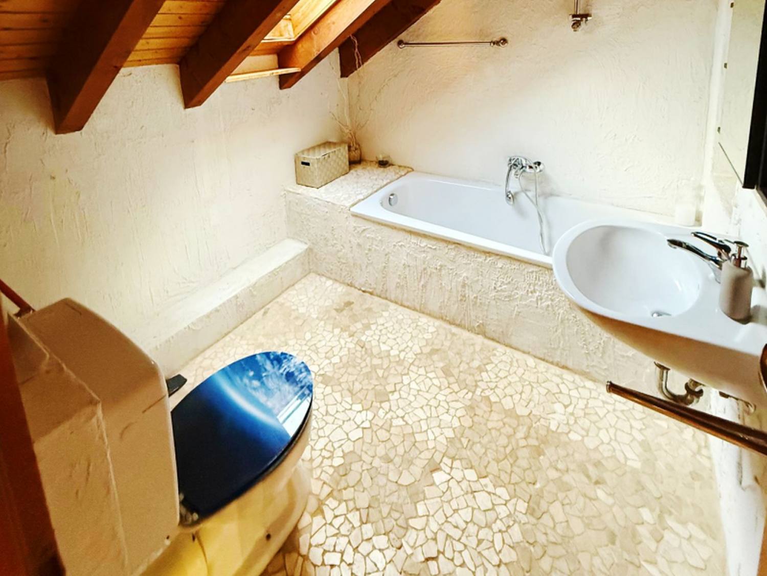Badezimmer 1: Dusche, Badewanne, WC, Waschbecken, Shampoo, Handtücher