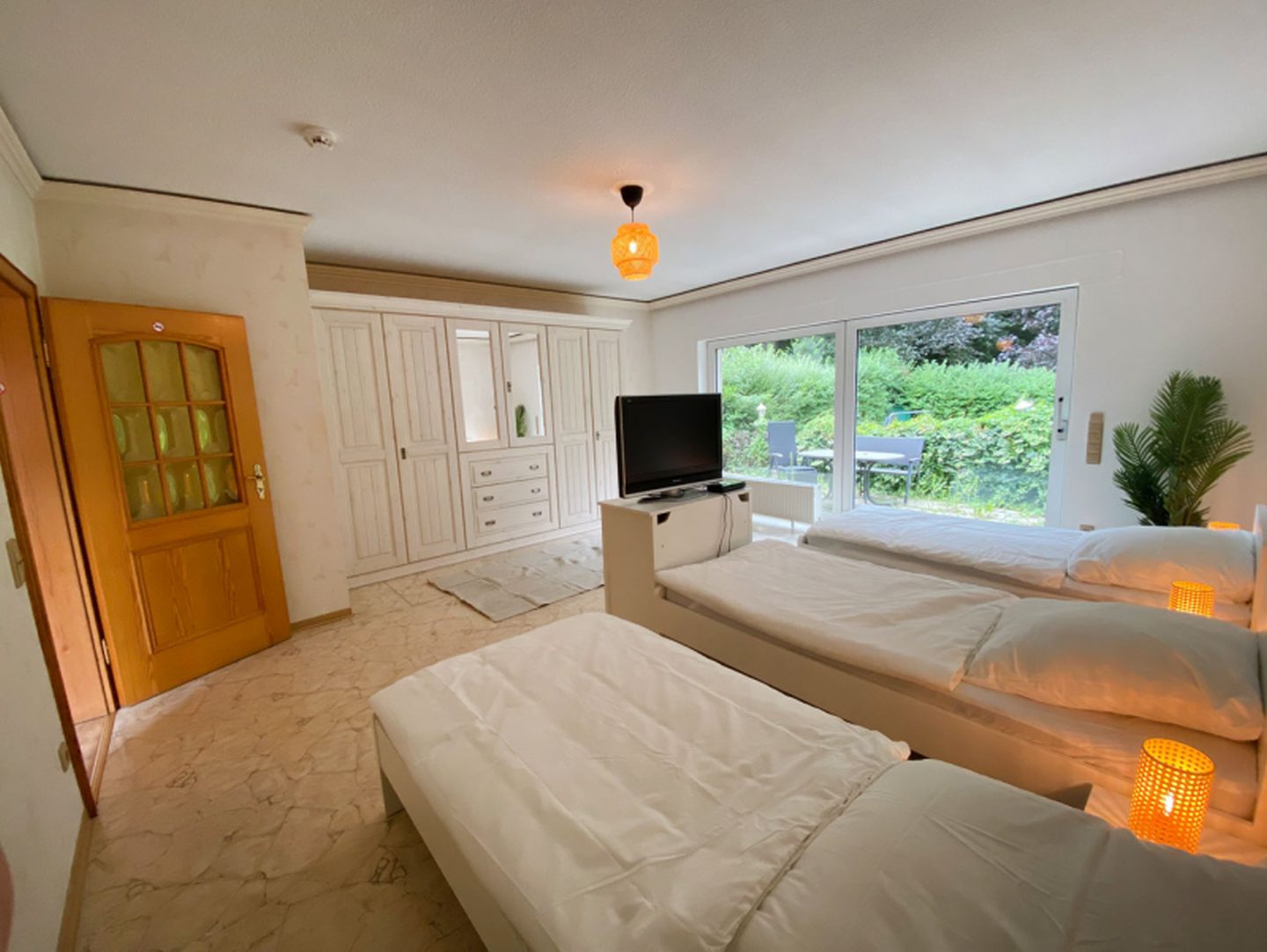 Schlafzimmer 2: 3 Einzelbetten, Kleiderschrank, Bettwäsche