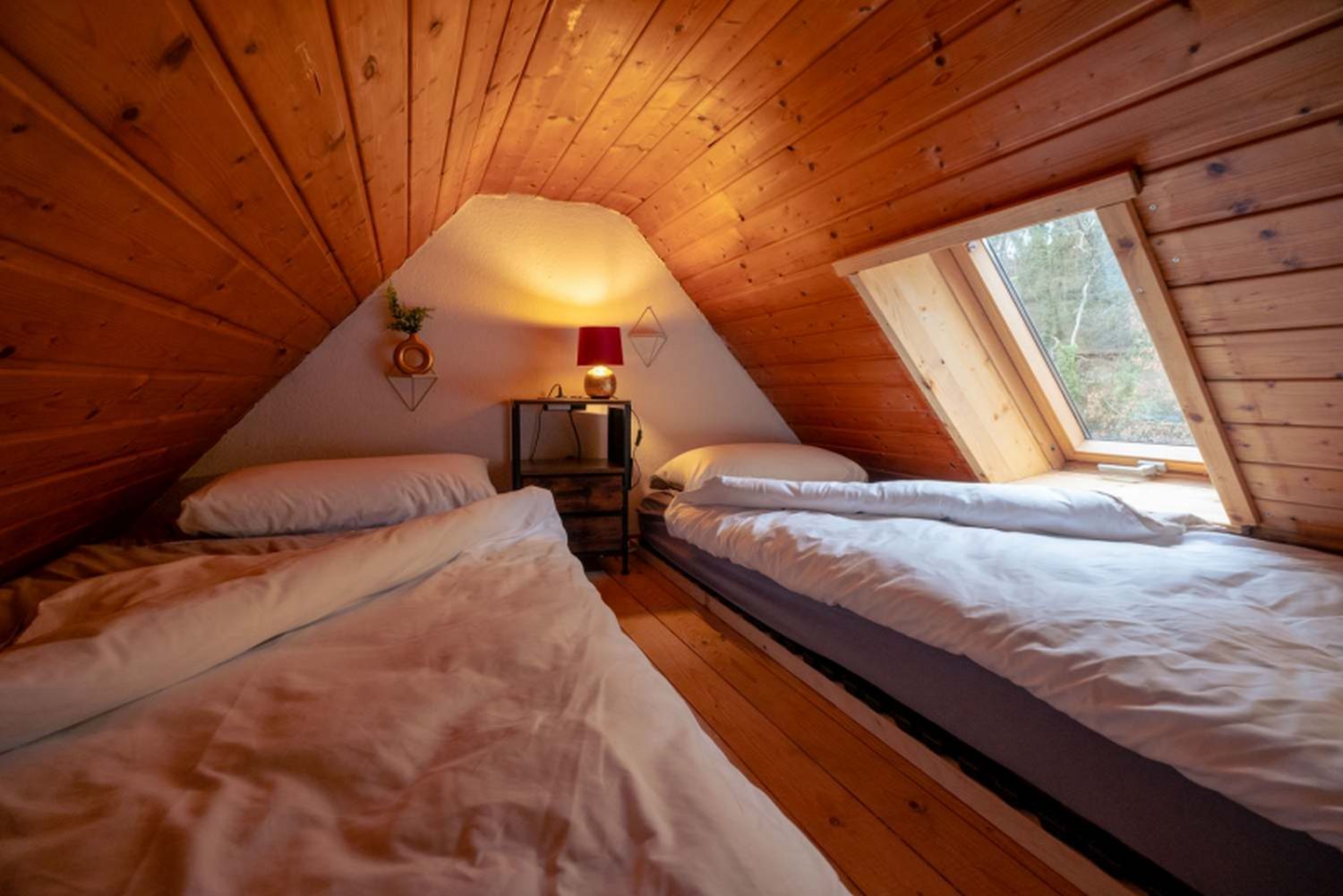 Schlafbereich (Empore): 2 Einzelbetten, Bettwäsche