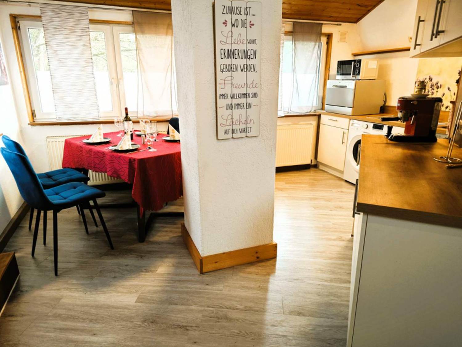 Erlebe alle Annehmlichkeiten unserer vollmöblierten Wohnung – ideal für längere Aufenthalte von berufstätigen Singles und Paaren. Diese 1-Zimmer-Loft-Wohnung mit Schlafplätzen für bis zu 3 Personen befindet sich im 2.OG. Die rund 55 m² sind effektiv genutzt und bieten ein großes Raumgefühl. Das Loft liegt in der Nähe von Pforzheim, ca. 5 Minuten mit dem Auto von der Autobahn entfernt. Die Einbauküche ist mit allen notwendigen Küchenutensilien ausgestattet. Im Essbereich befindet sich ein Esstisch mit 4 Stühlen (der Tisch ist zusätzlich ausziehbar).