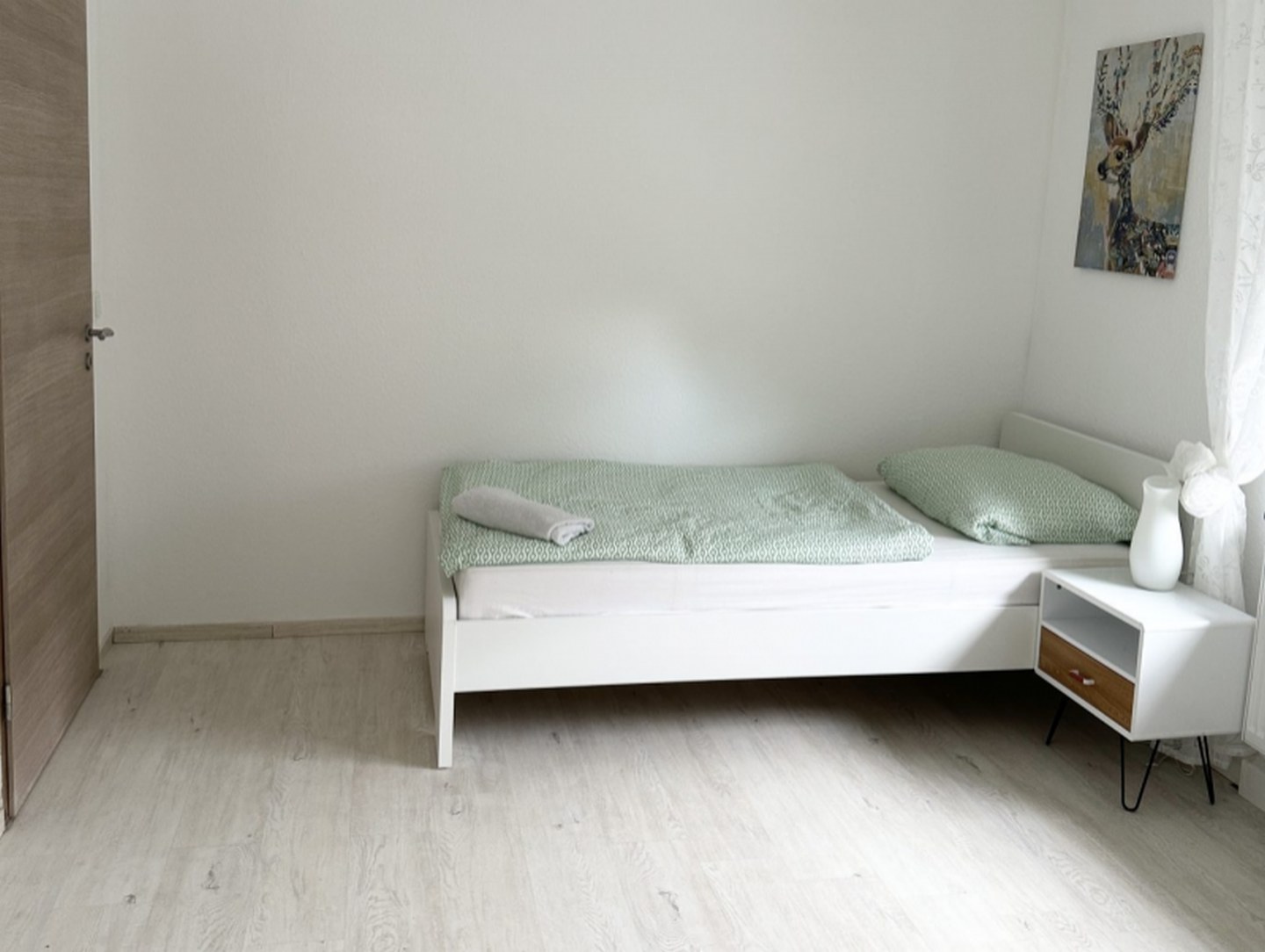 T12d: Die 3 Zimmer Ferienwohnung ist 60m² groß, befindet sich im 1.OG mit Balkon auf der Straßenseite und bietet Platz für bis zu 3 Personen. Auch diese Wohnung ist speziell auf die Bedürfnisse von Geschäftsreisenden und Monteuren ausgelegt und bietet eine ruhige, funktionale Unterkunft.