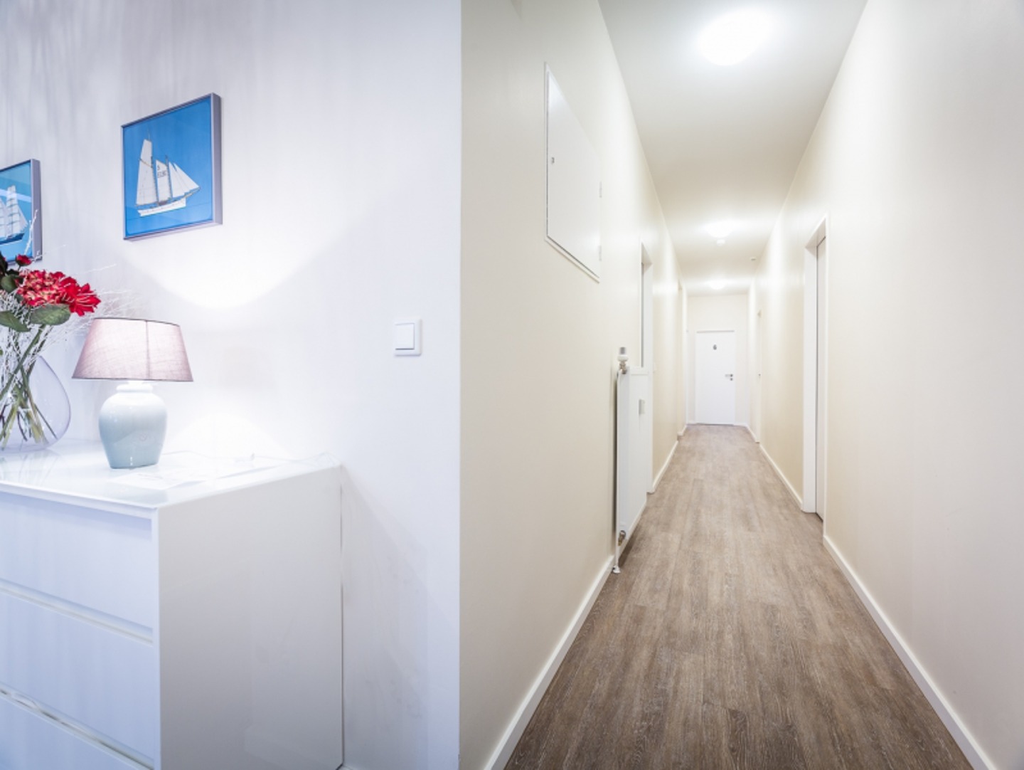 Diese hochwertige Wohnung mit 7 Zimmern und 15 Betten befindet sich im 3. Obergeschoss eines Mehrparteienhauses und hat eine Wohnfläche von 200 qm. Ein Fahrstuhl geht direkt in die Wohnung. Sie verfügt über eine große Loggia (dort ist Rauchen erlaubt), 4 Bäder, Flatscreen-TV in allen Zimmern sowie einen gemeinsamen Essbereich und eine vollausgestattete Küche.
