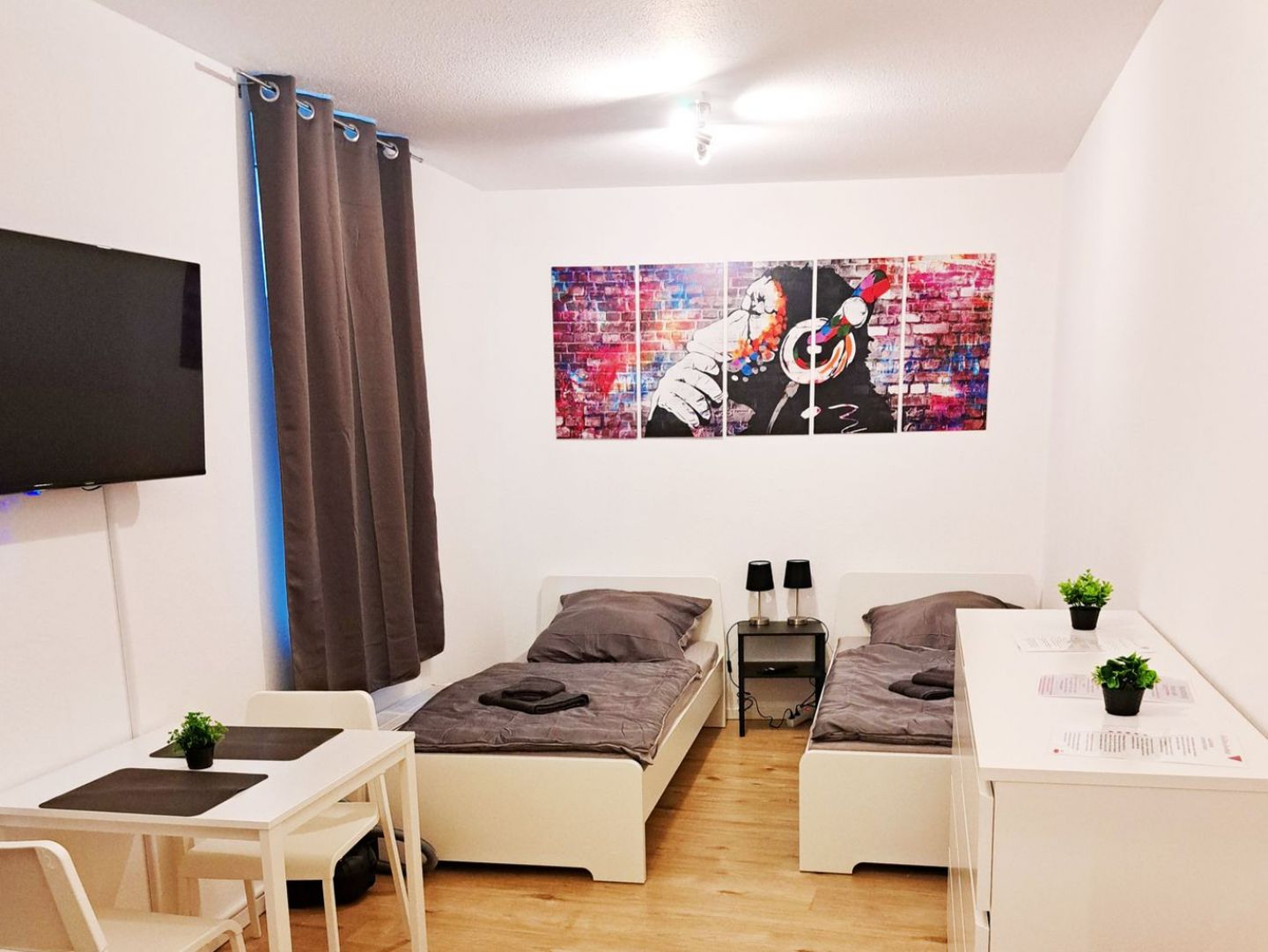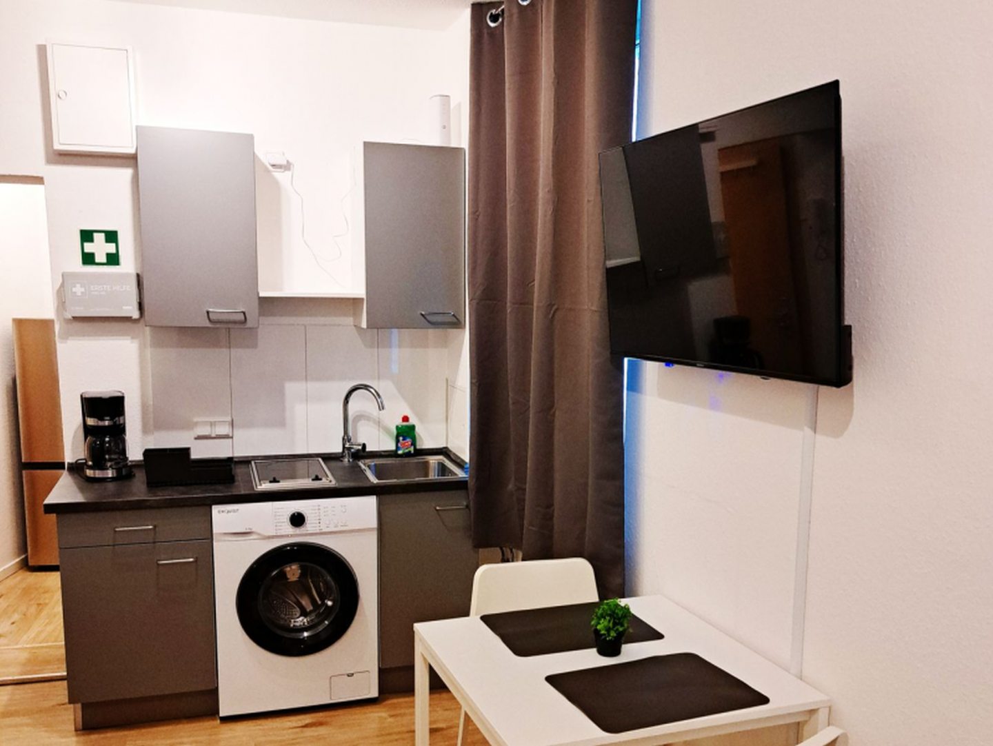 Schöne, moderne 1-Zimmer-Wohnung in einem wunderschönem Altbau, zentral gelegen gegenüber des Bahnhof Wismar. Die Wohnung liegt im 1. OG, ist 21 m² groß, wurde im Januar 2025 renoviert, ist komplett möbliert und für 2 Personen geeignet.Sie verfügt über eine neue, voll ausgestattete Einbauküche mit einem kleinen Essbereich. Die Wohnung ist mit zwei Einzelbetten, 42 Zoll Smart-TV, Kommode und Nachttisch ausgestattet.