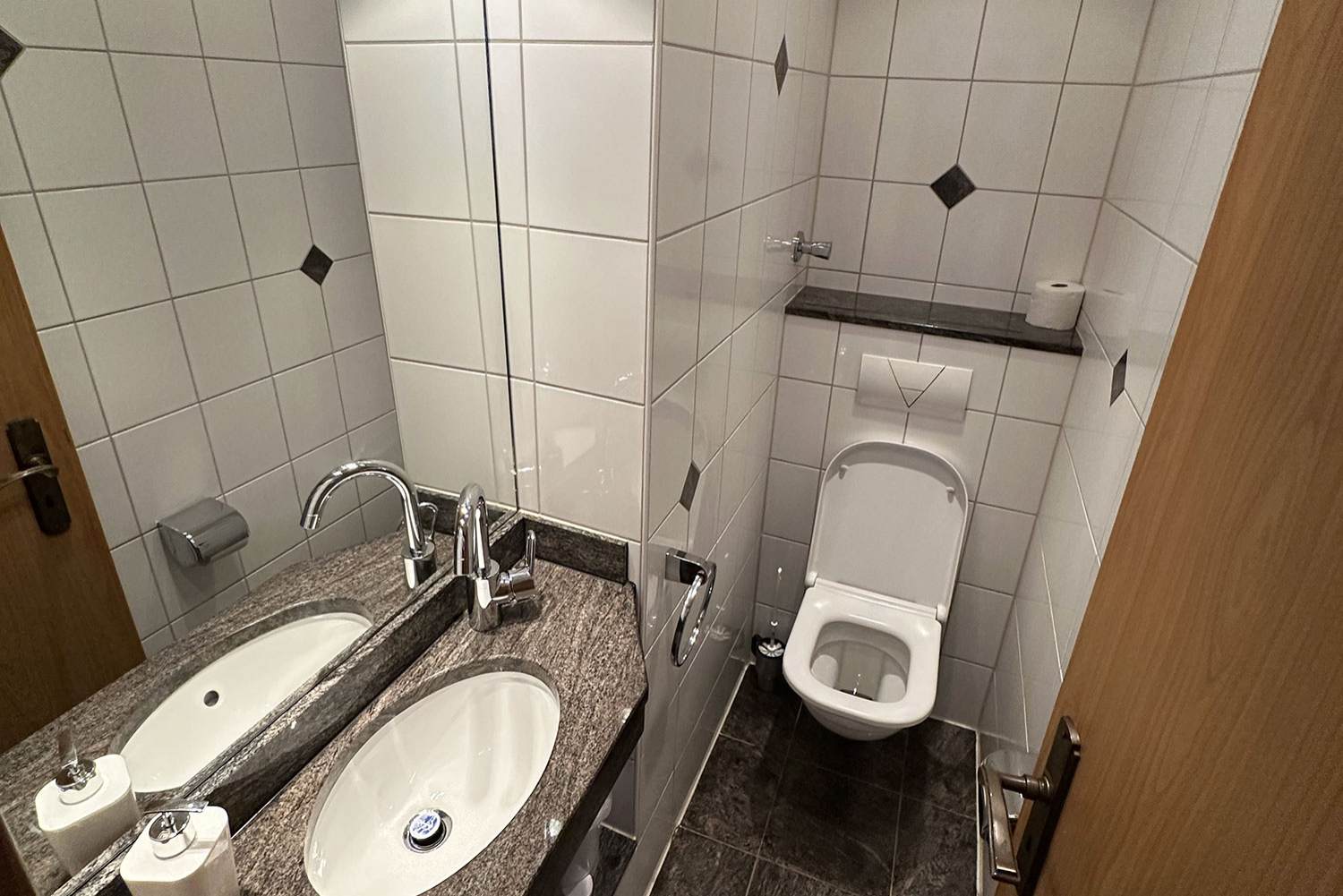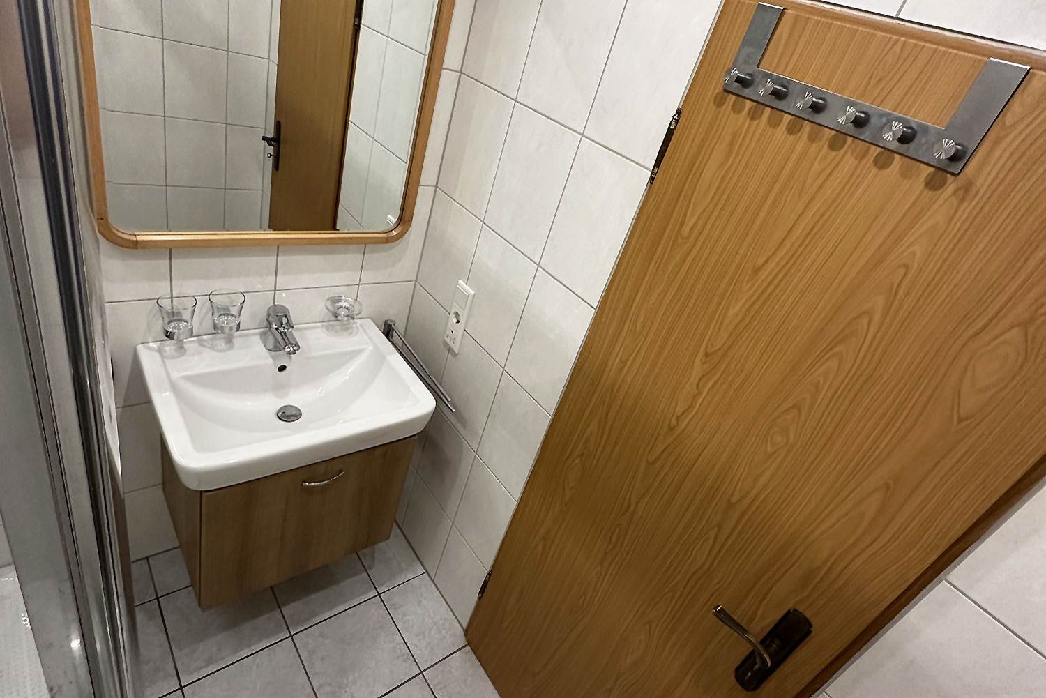 Badezimmer: Dusche, Duschwanne, WC, Waschbecken