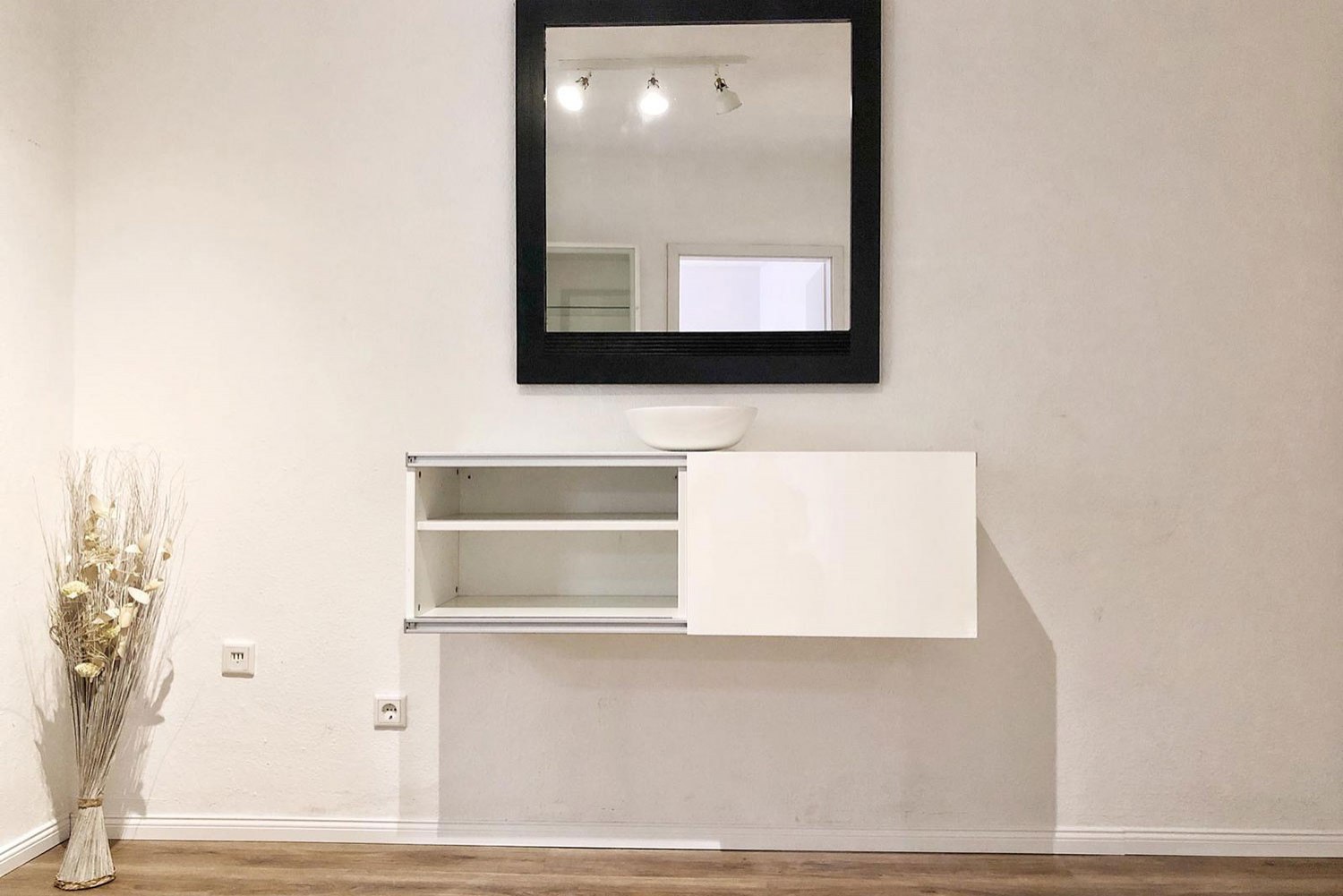 Nach der Eingangstür finden Sie einen schönen Vorraum, von welchem sich die Zimmer ableiten. 1 Küche mit Essbereich 1 Badezimmer 1 Schlaf- und Wohnzimmer, in dem das Schlafsofa von dem Doppelbett durch eine Gardine getrennt ist.