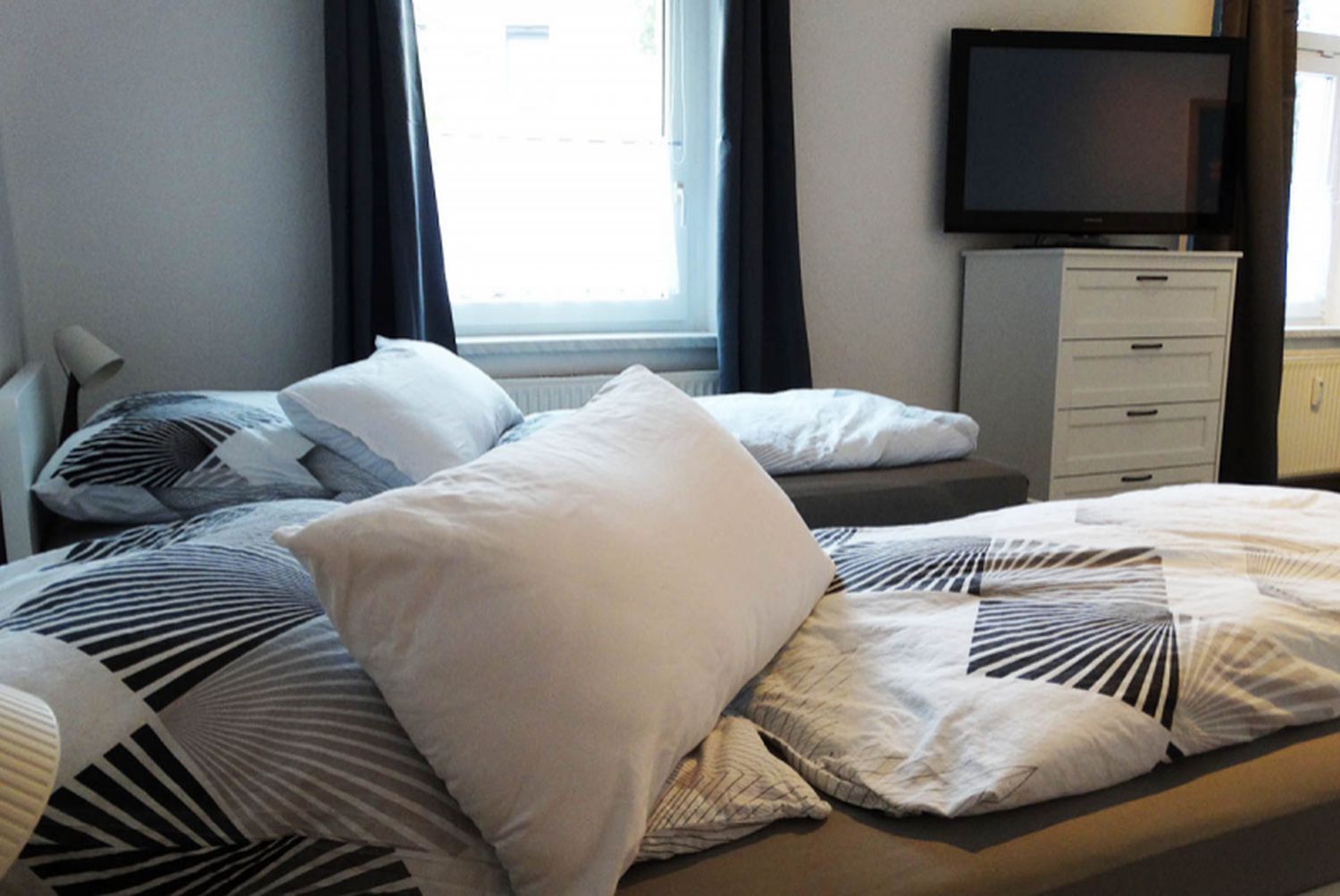 Schlafzimmer: 2 Einzelbetten, Bettwäsche vorhanden
